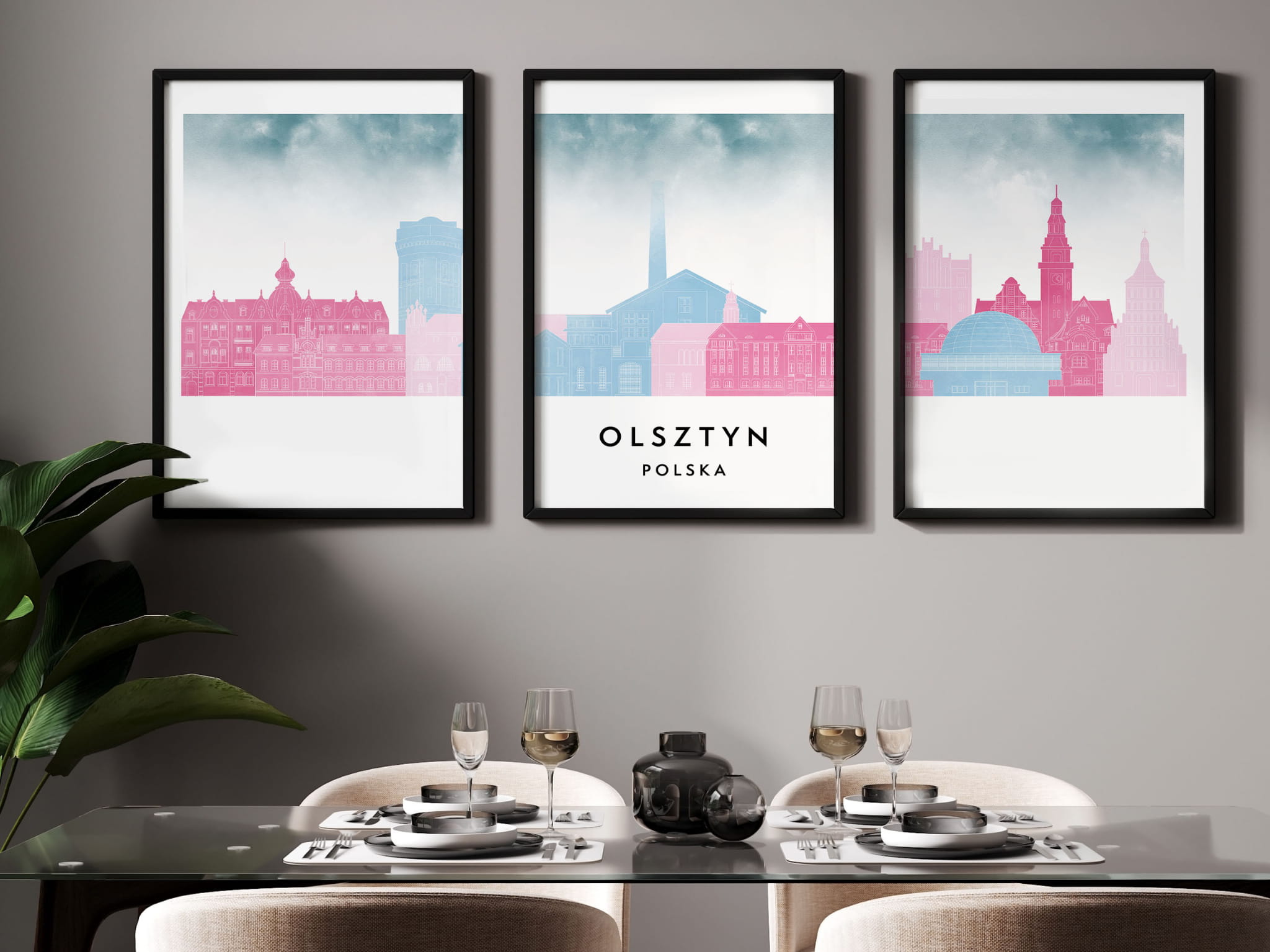 Plakat skylines TRYPTYK Olsztyn w stylu Watercolor/ Akwarelowym