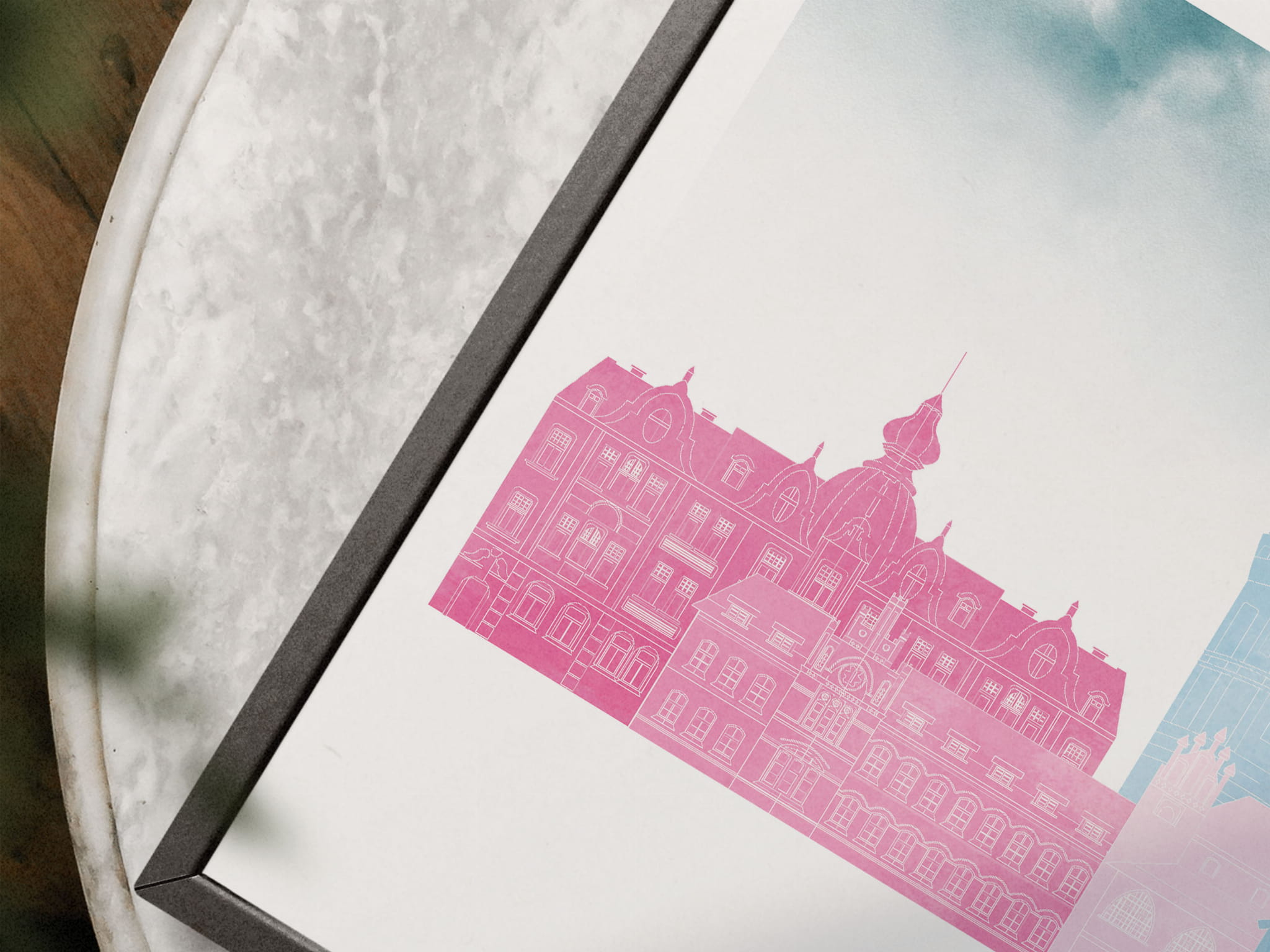 Projektując plakaty z tej serii, postawiliśmy na kolory i charakterystyczne symbole miast.  Taki zestaw podróżniczych plakatów będzie doskonałym uzupełnieniem pomieszczenia.