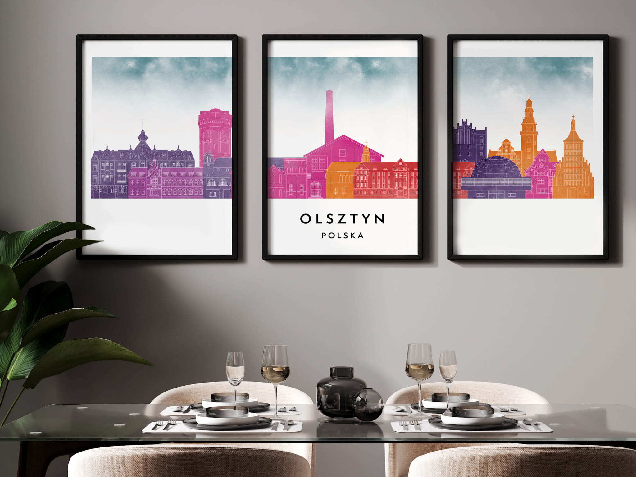 Plakat skylines TRYPTYK Olsztyn w stylu Watercolor/ Akwarelowym
