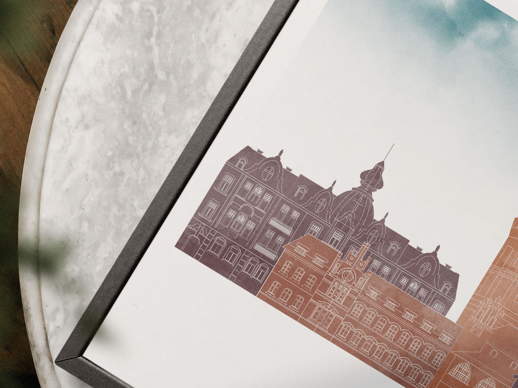 Plakat skylines TRYPTYK Olsztyn w stylu Watercolor/ Akwarelowym