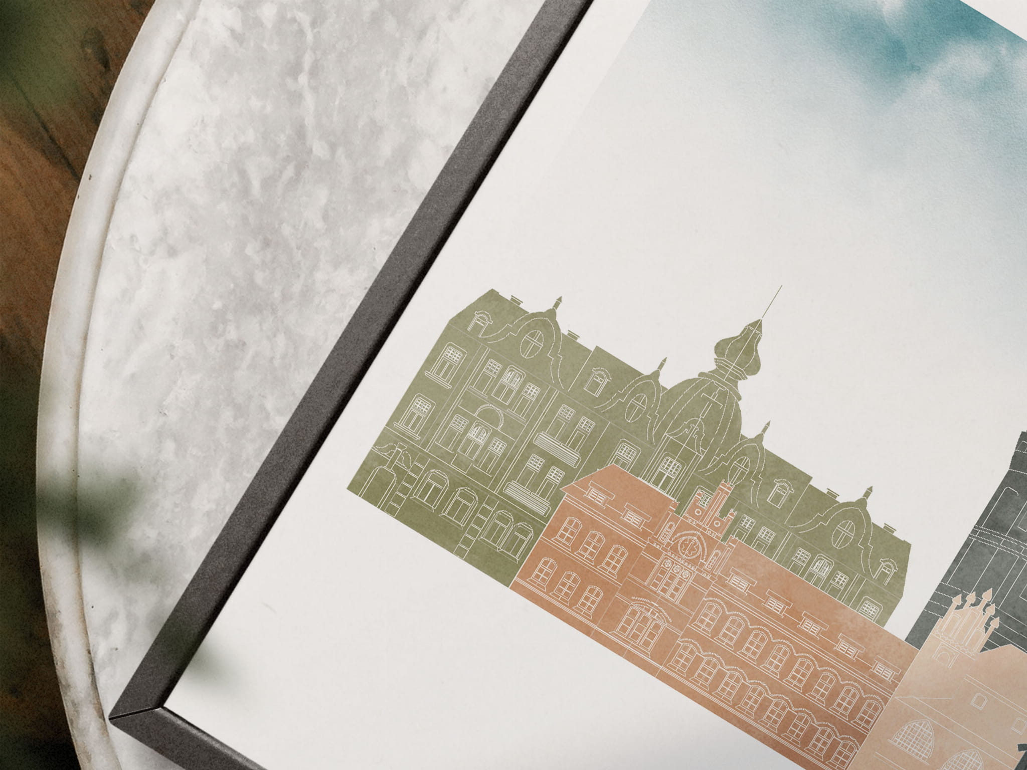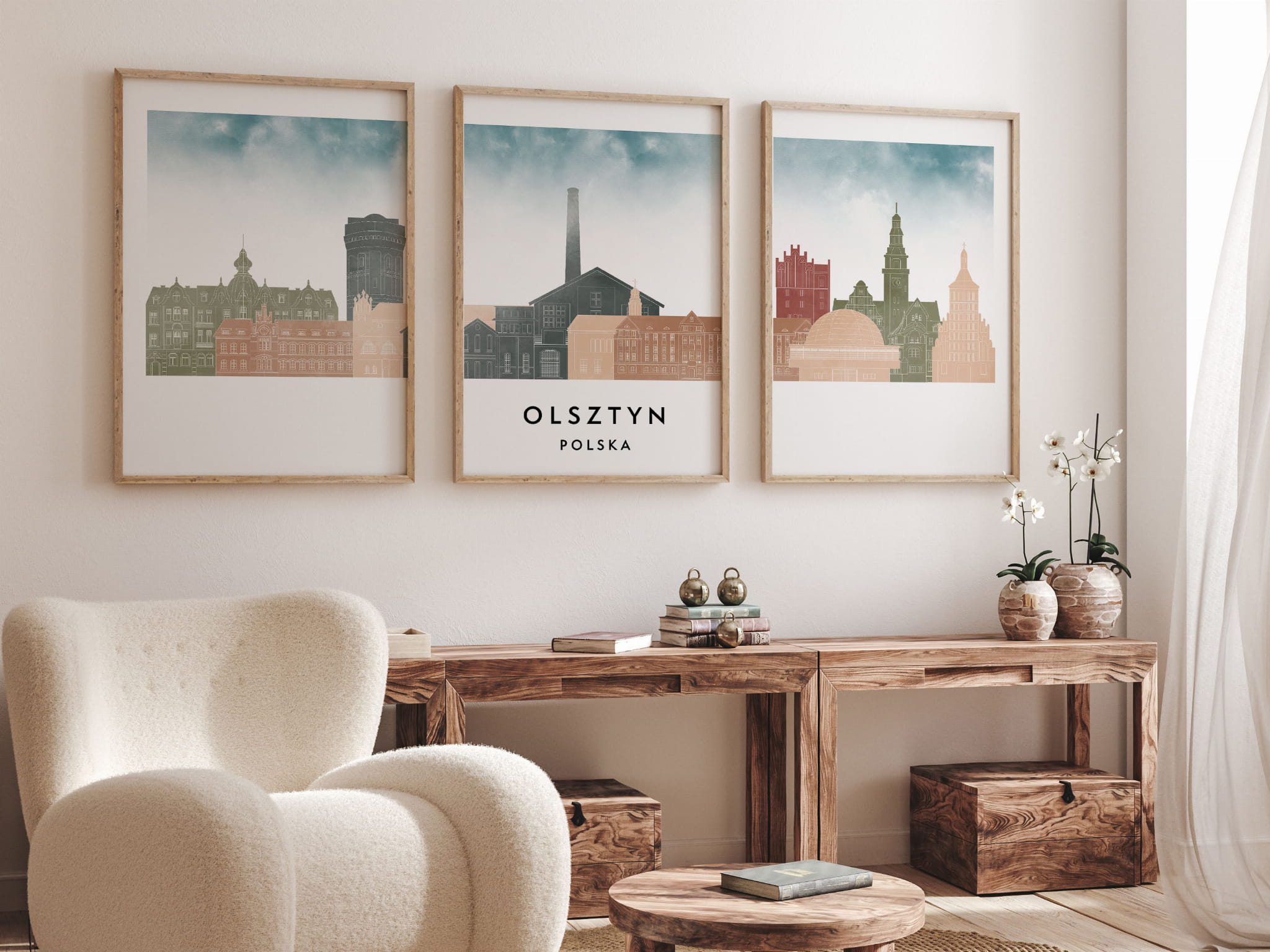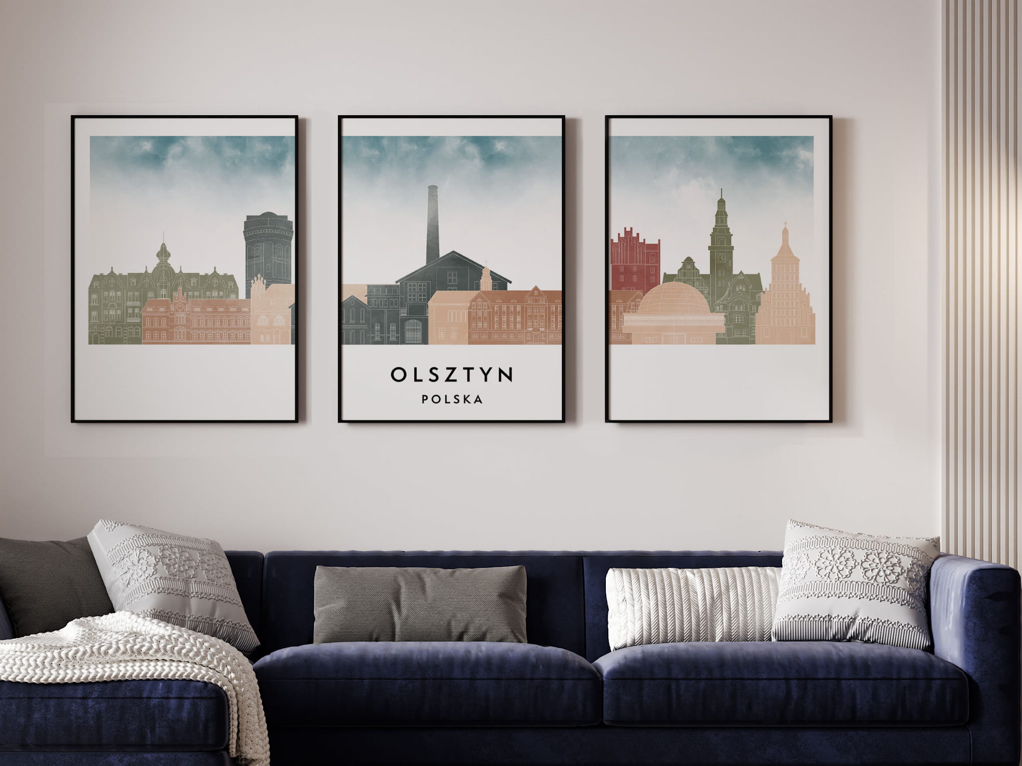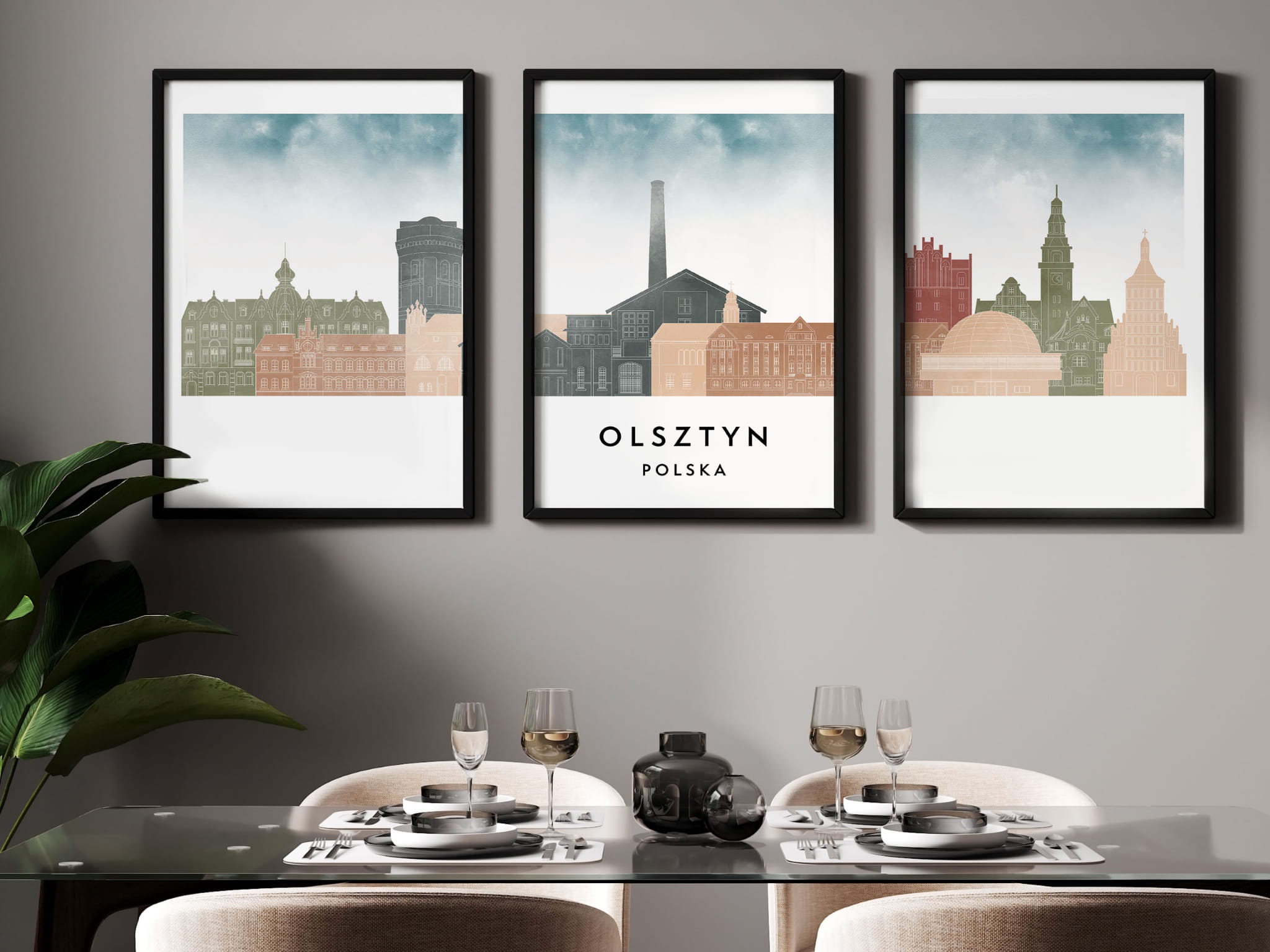 Plakat skylines TRYPTYK Olsztyn w stylu Watercolor/ Akwarelowym
