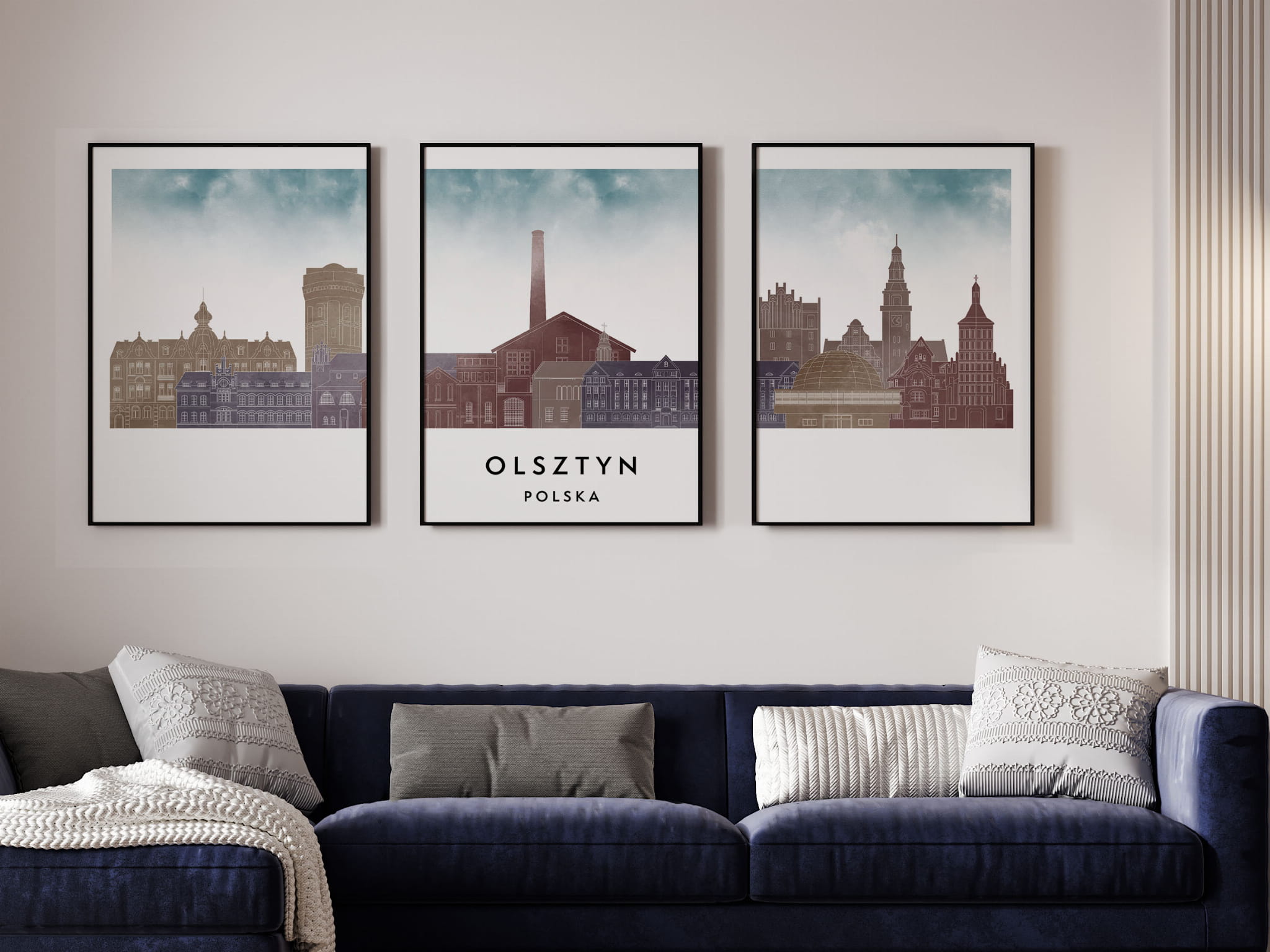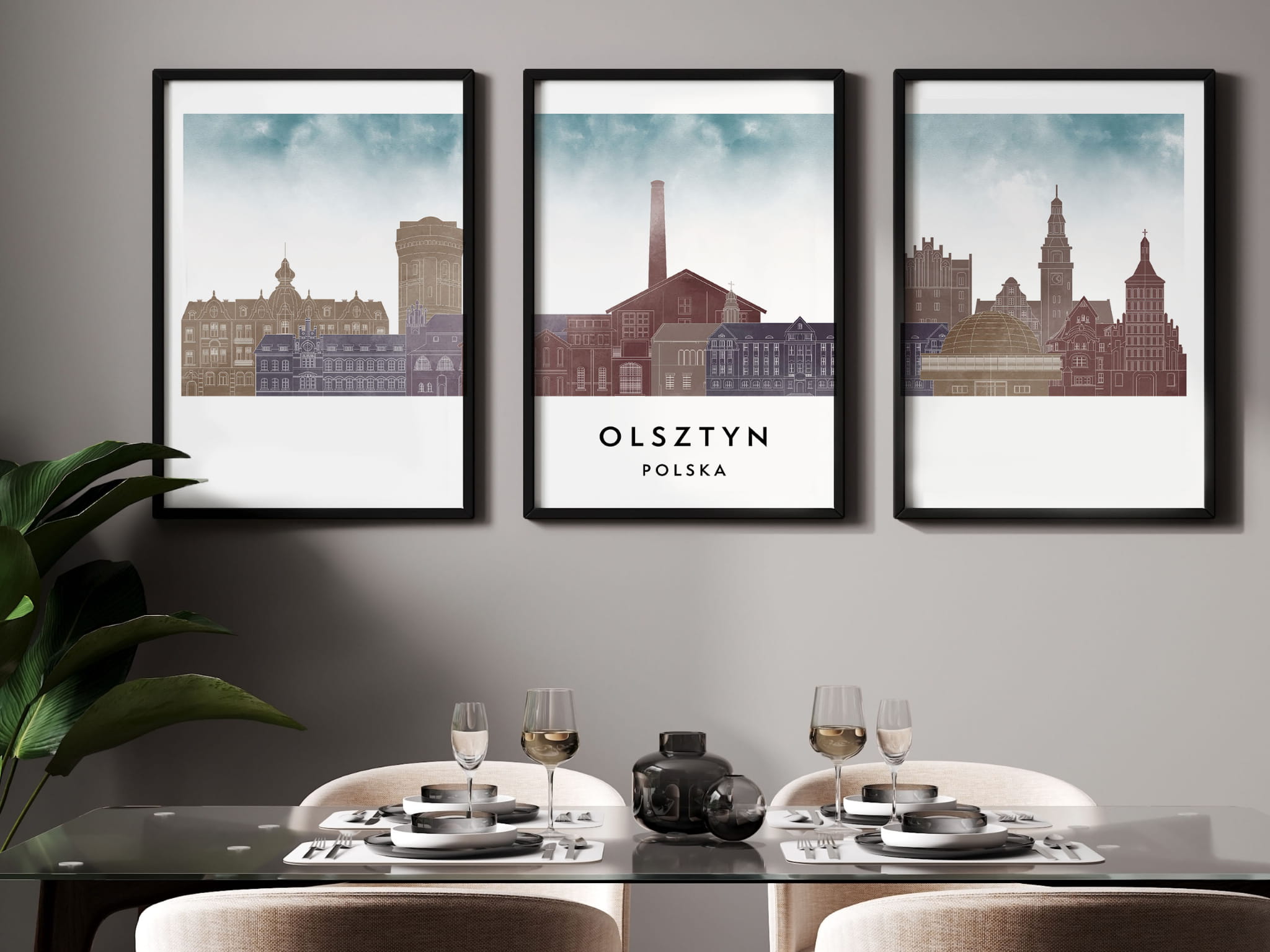 Plakat skylines TRYPTYK Olsztyn w stylu Watercolor/ Akwarelowym
