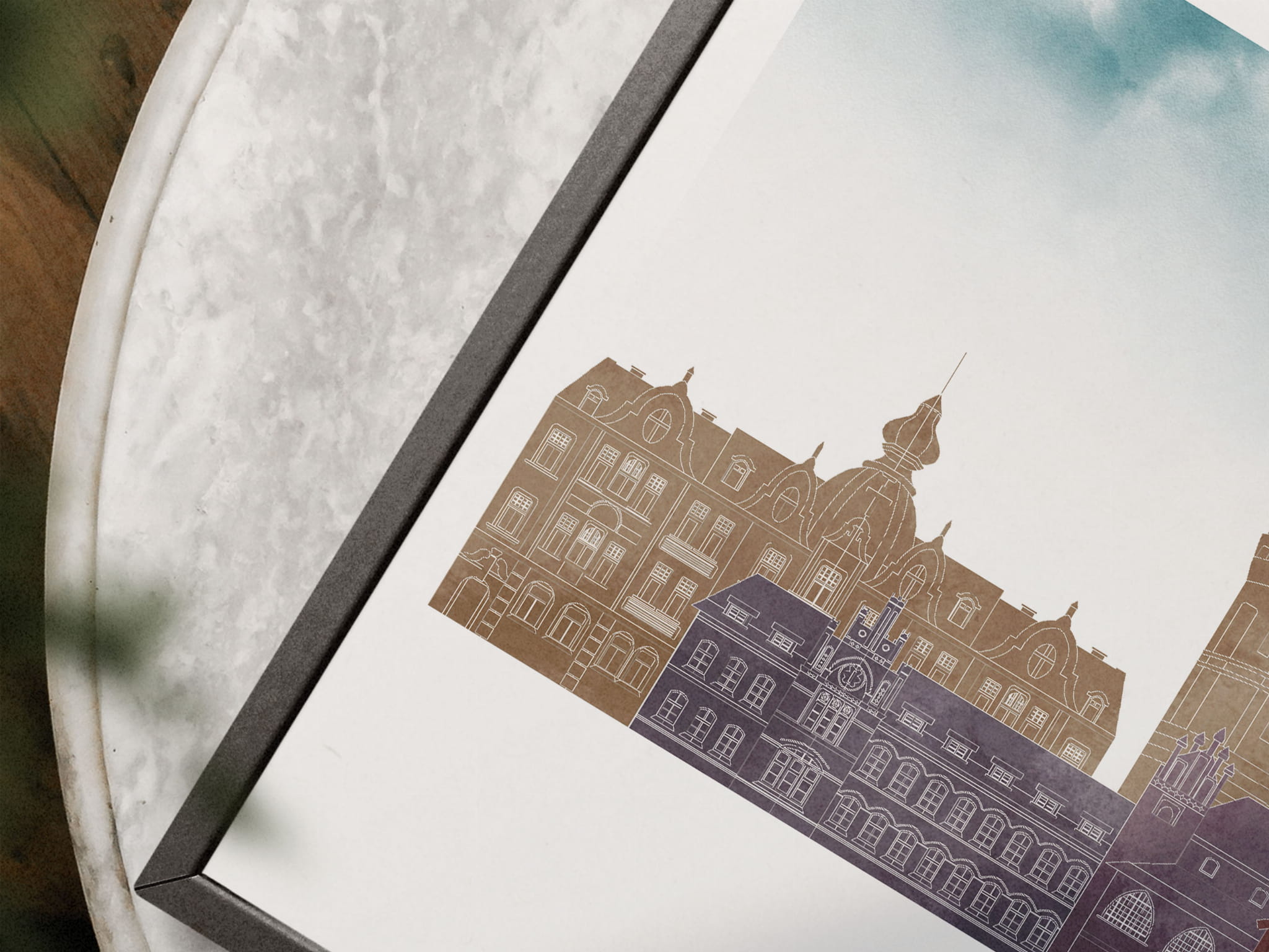 Projektując plakaty z tej serii, postawiliśmy na kolory i charakterystyczne symbole miast.  Taki zestaw podróżniczych plakatów będzie doskonałym uzupełnieniem pomieszczenia.
