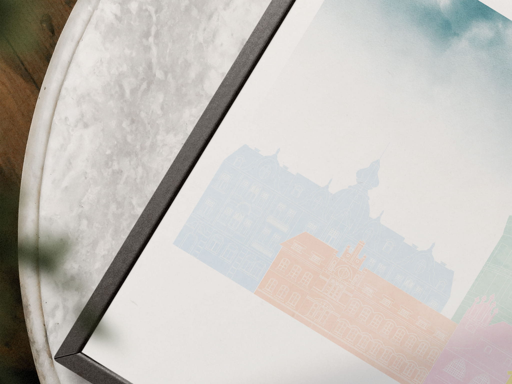 Projektując plakaty z tej serii, postawiliśmy na kolory i charakterystyczne symbole miast.  Taki zestaw podróżniczych plakatów będzie doskonałym uzupełnieniem pomieszczenia.