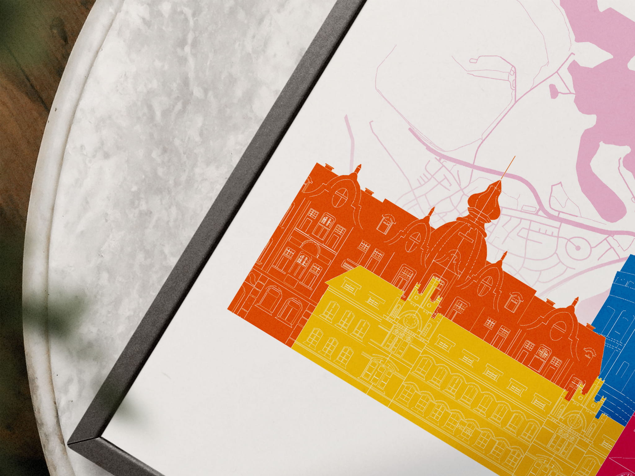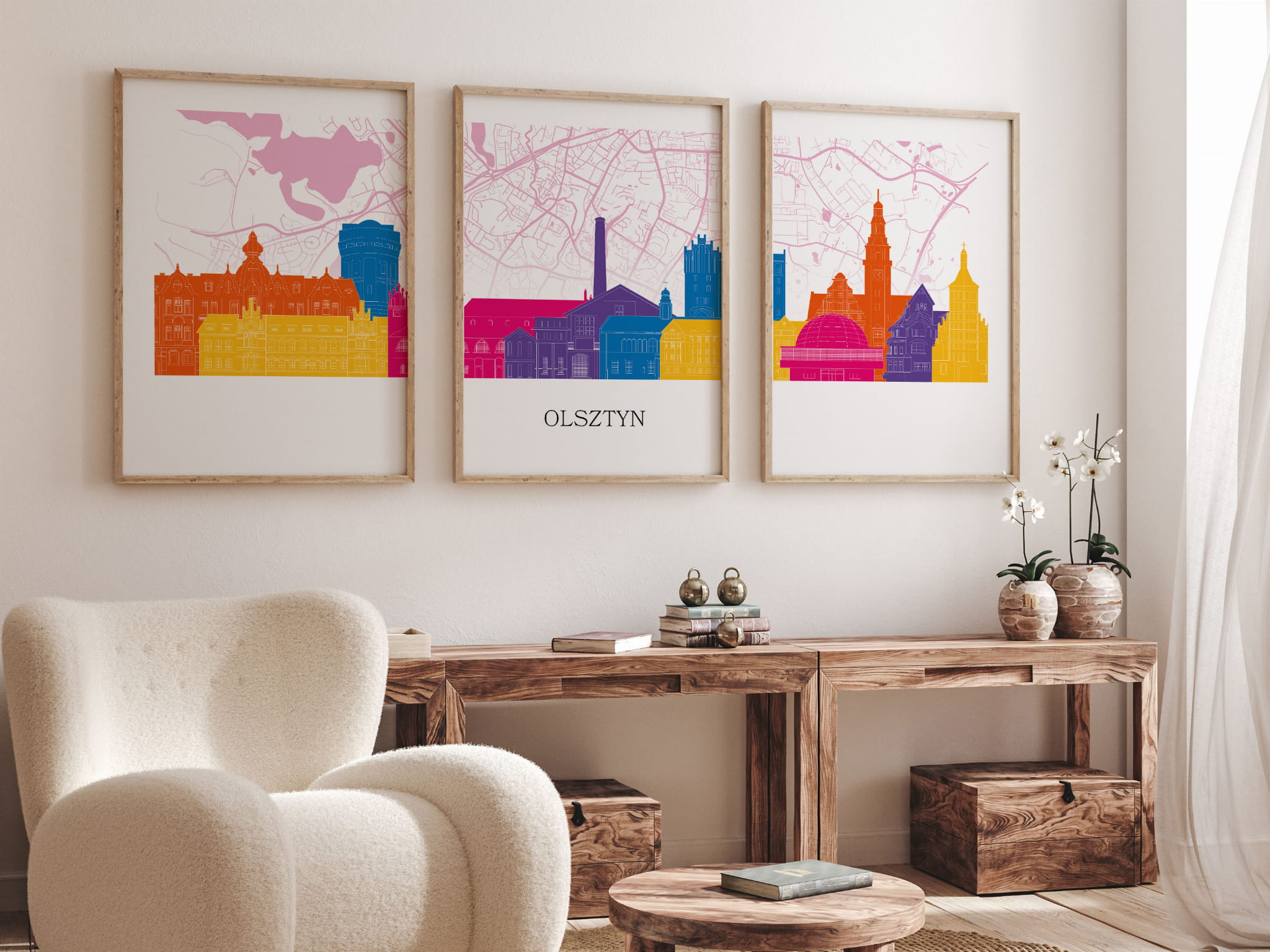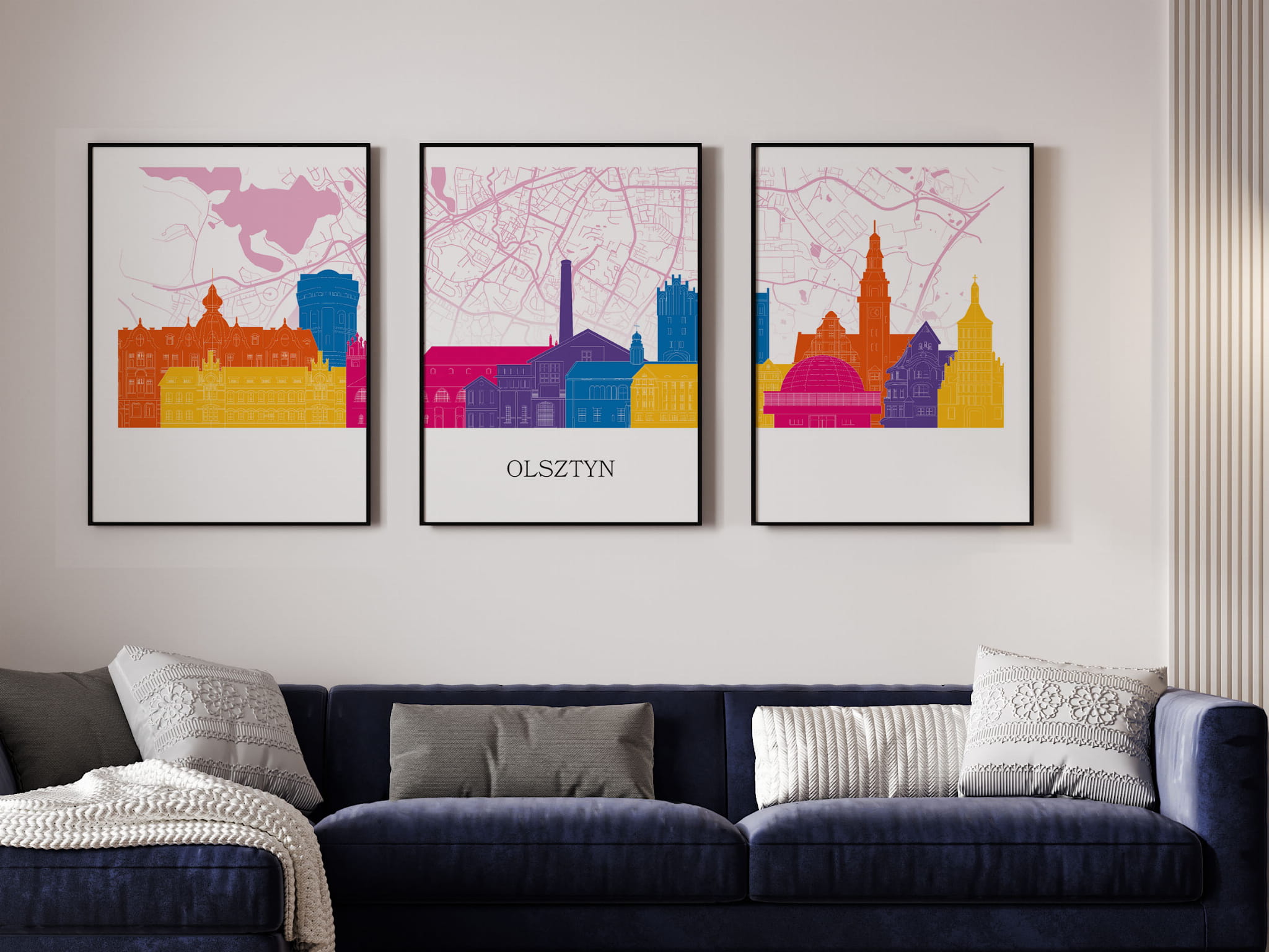 Plakat skylines TRYPTYK Olsztyn z mapą