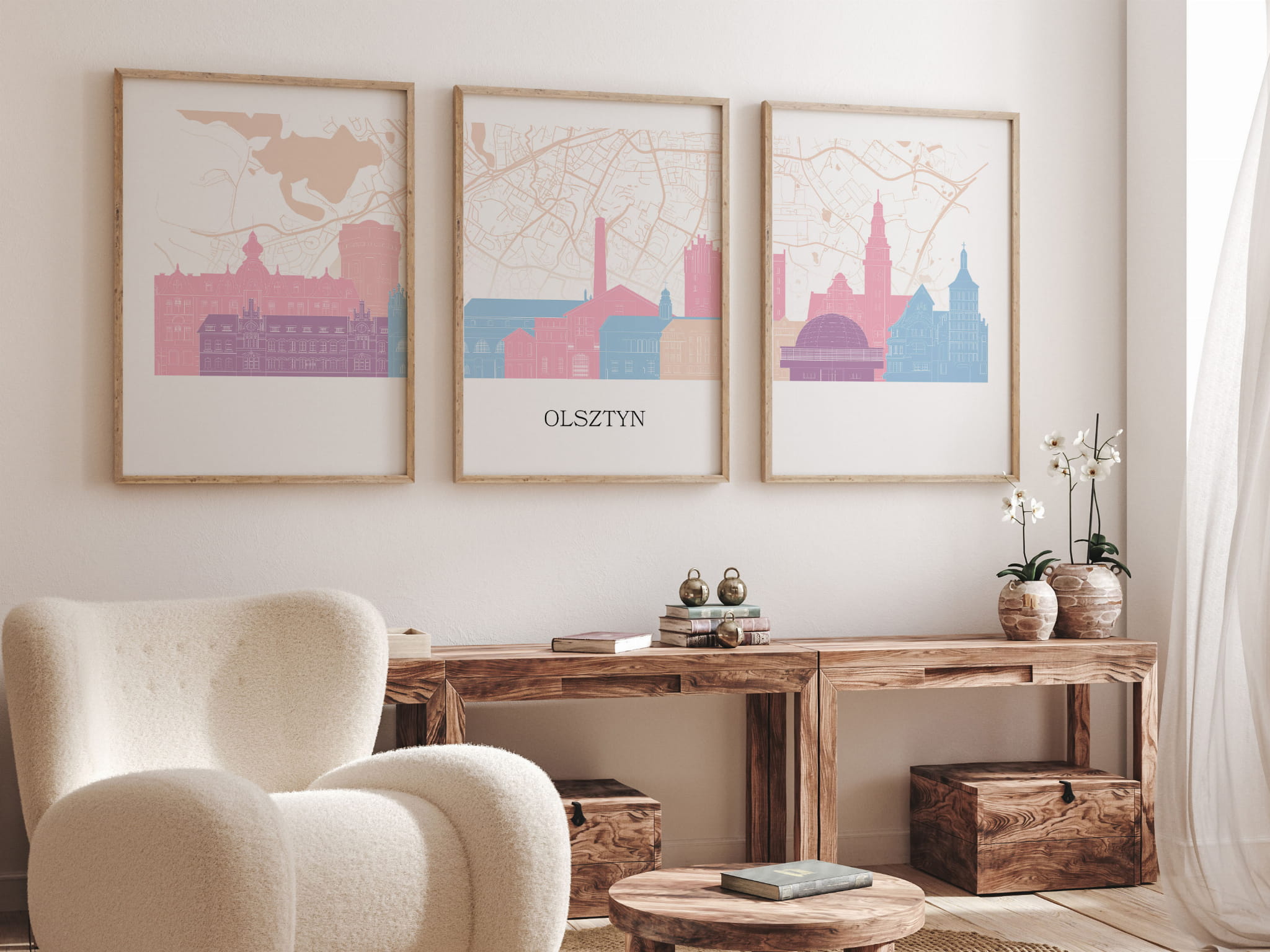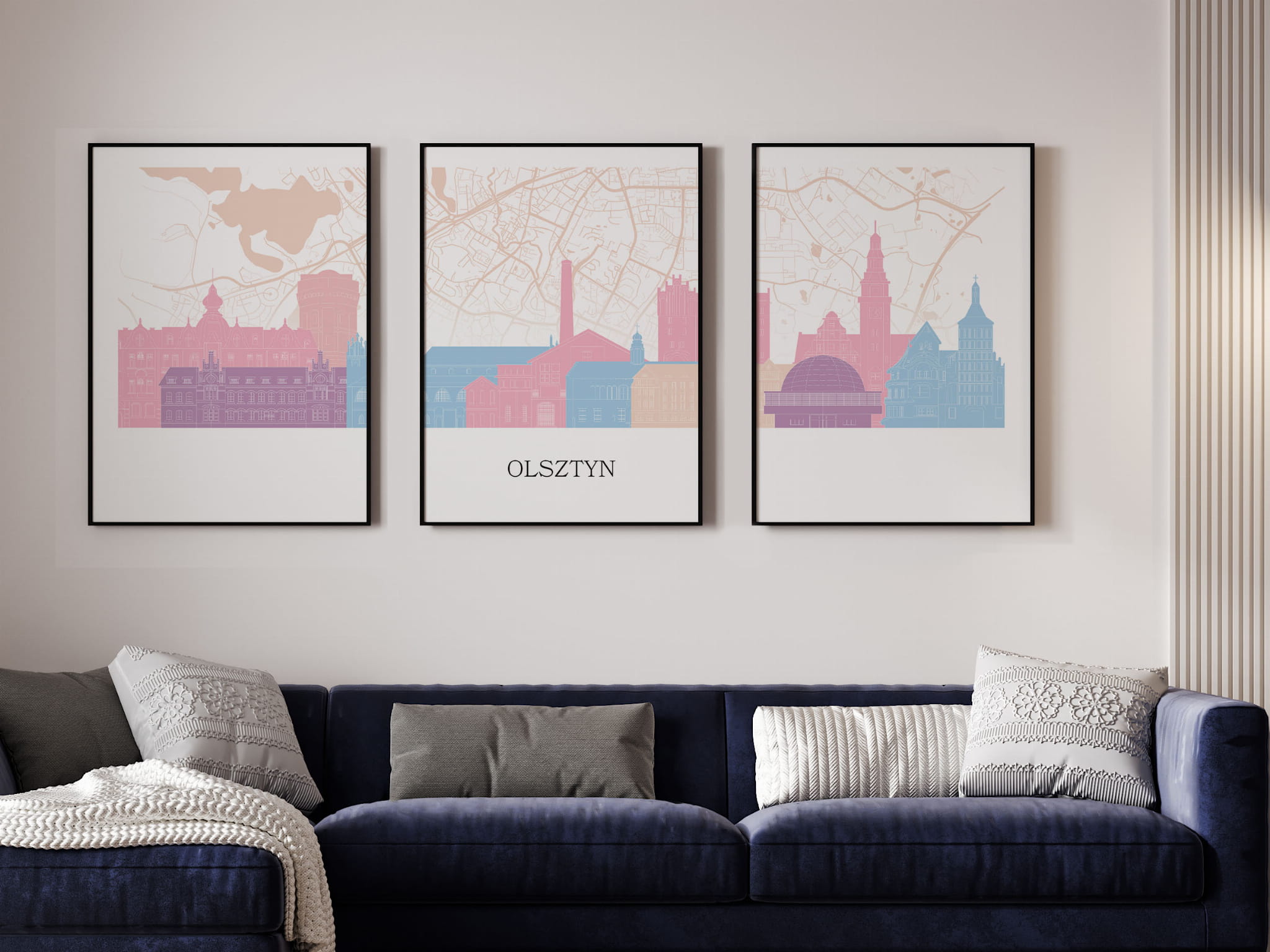 Plakat skylines TRYPTYK Olsztyn z mapą
