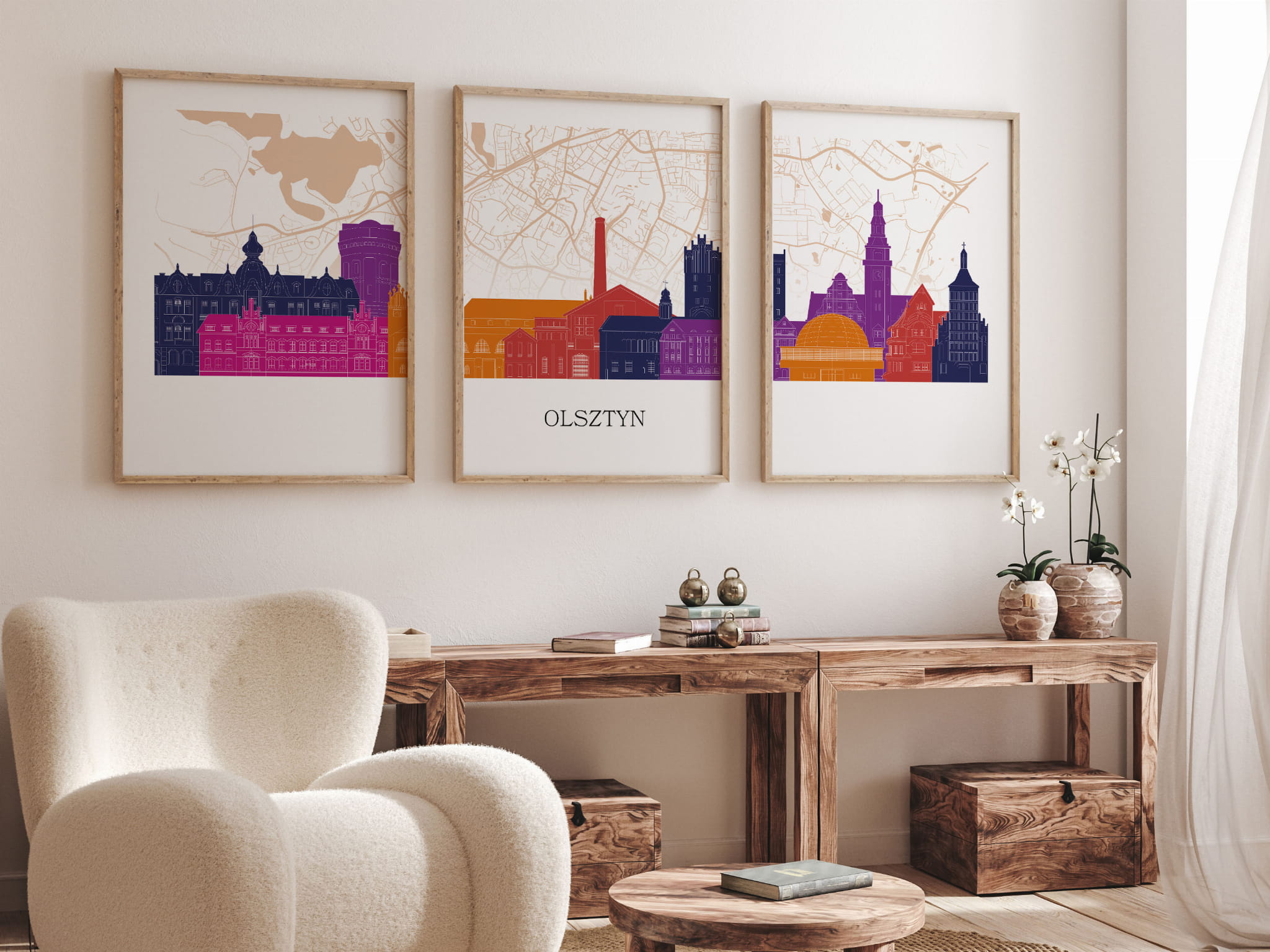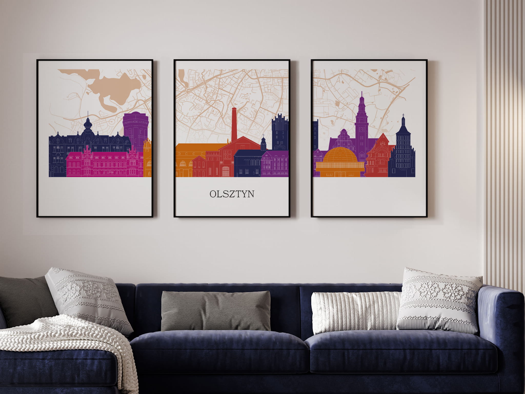 Plakat skylines TRYPTYK Olsztyn z mapą