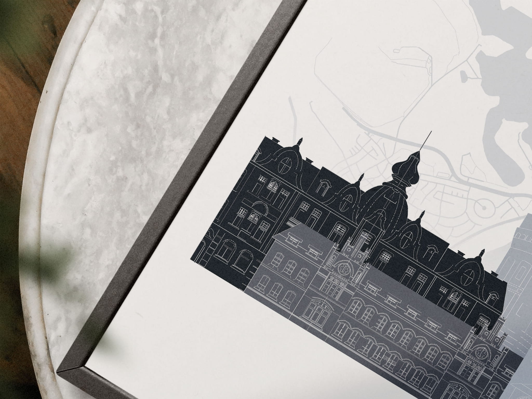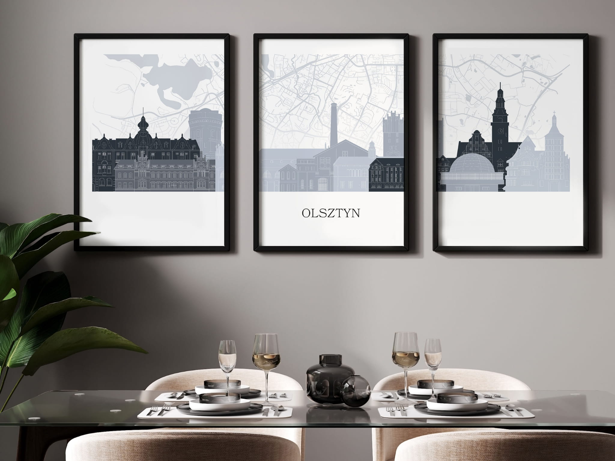 Plakat skylines TRYPTYK Olsztyn z mapą