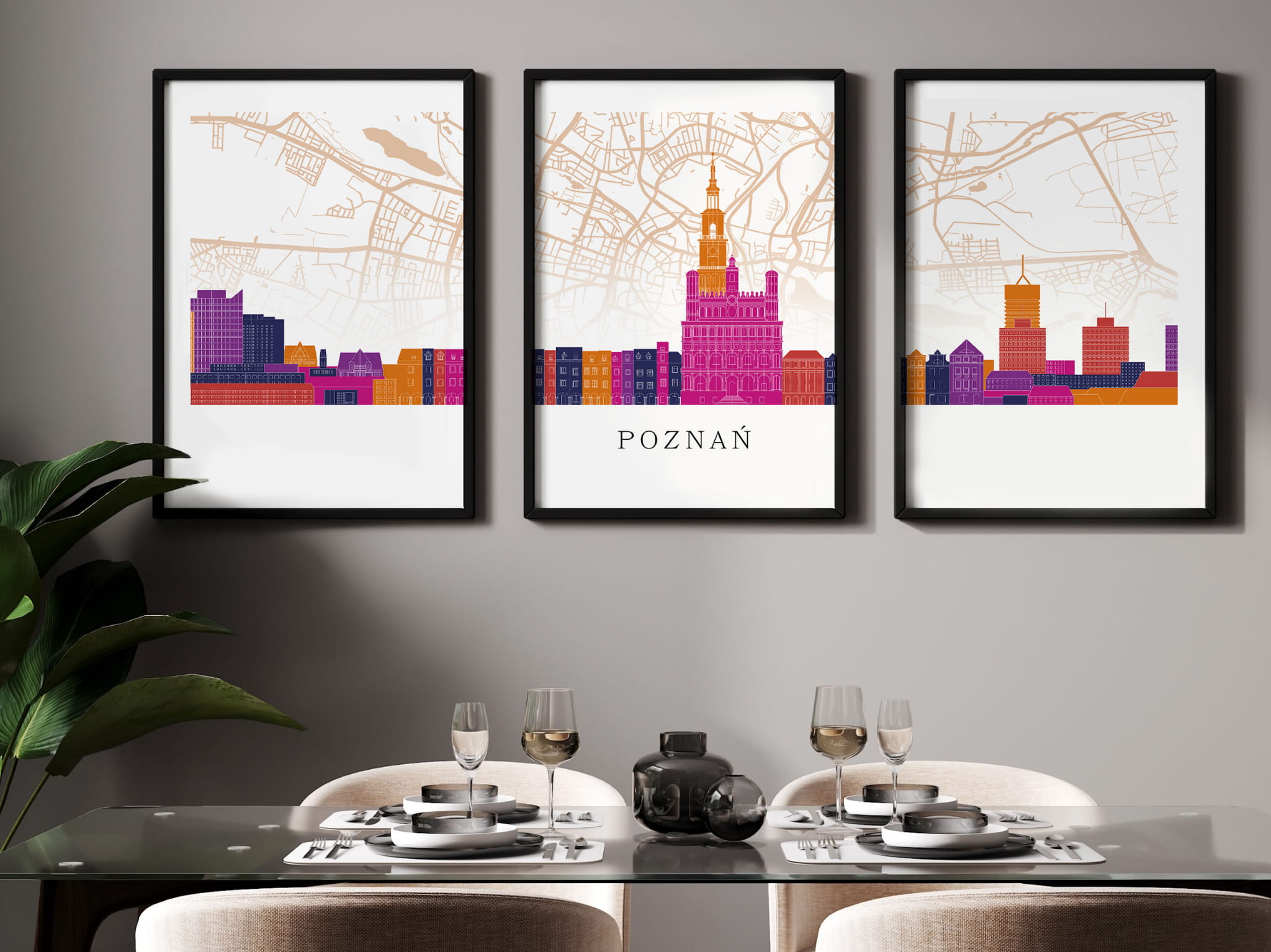 Plakat skylines TRYPTYK Poznań z mapą