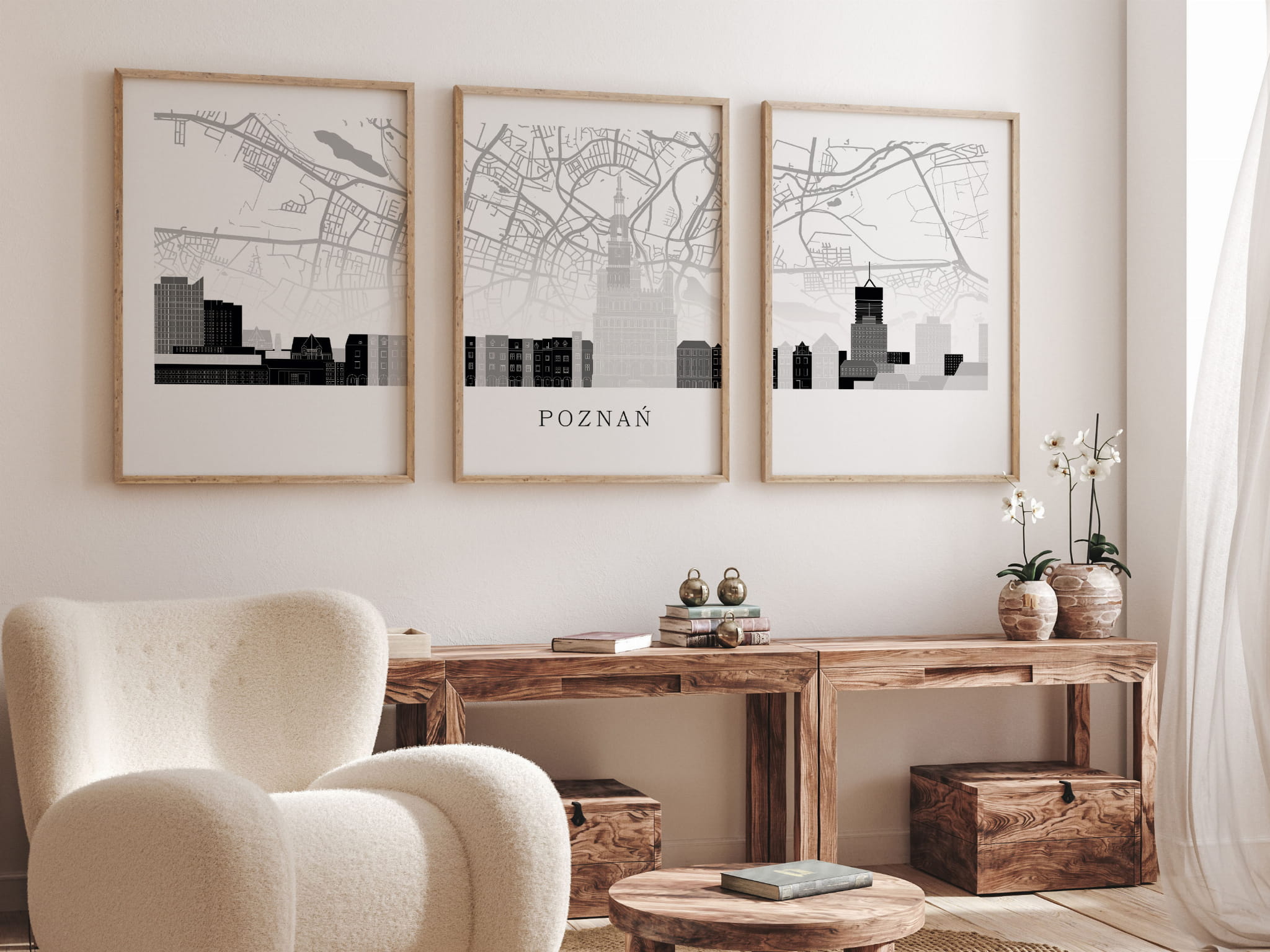 Plakat skylines TRYPTYK Poznań z mapą