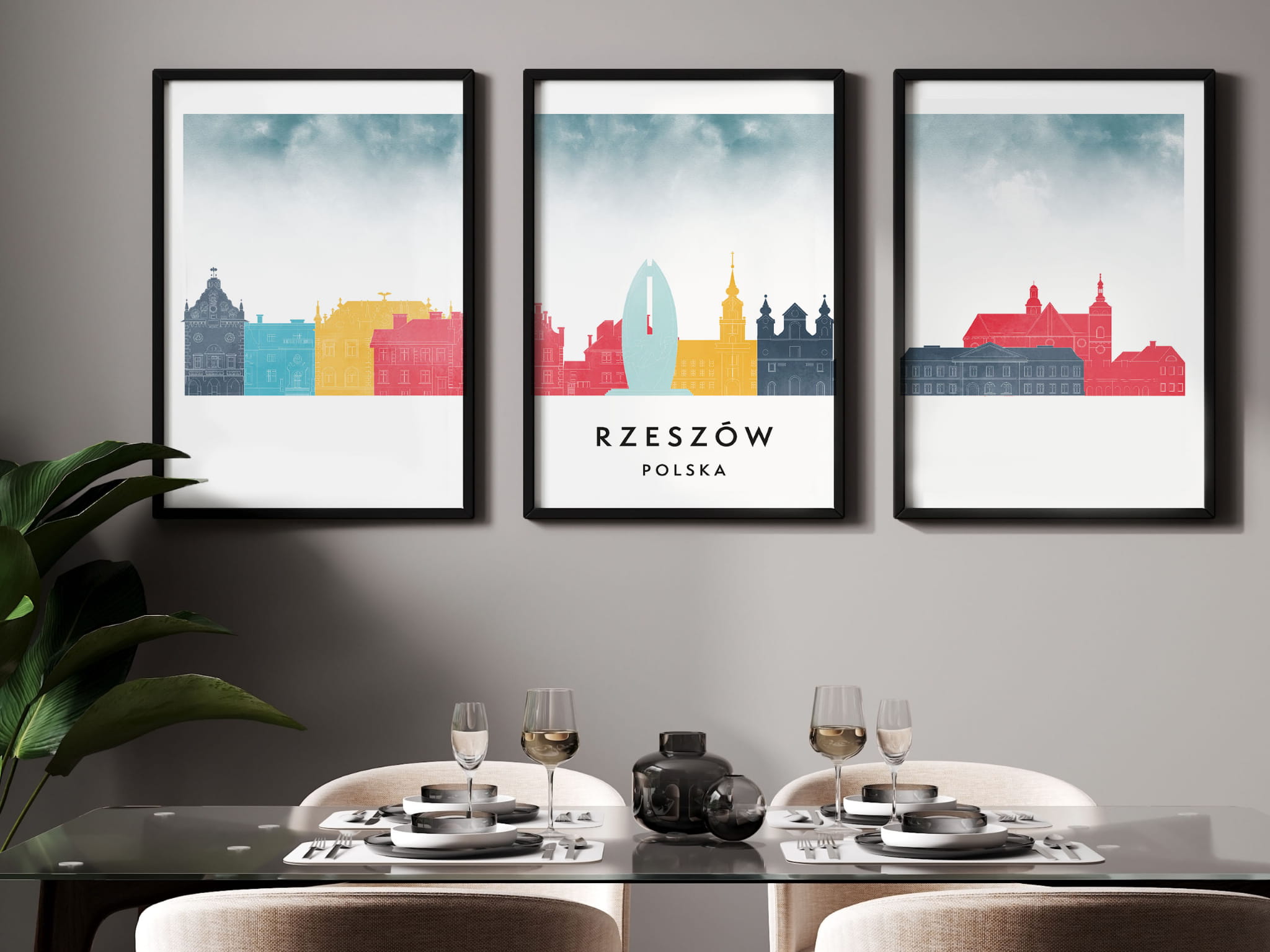Plakat skylines TRYPTYK Rzeszów w stylu Watercolor/ Akwarelowym