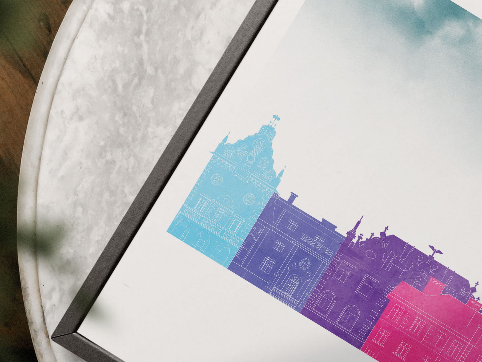 Plakat skylines TRYPTYK Rzeszów w stylu Watercolor/ Akwarelowym