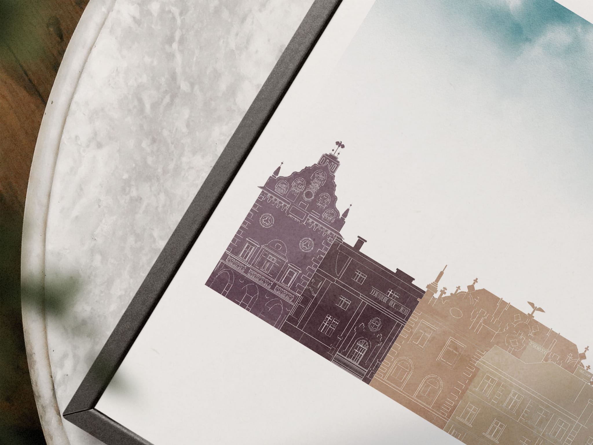 Plakat skylines TRYPTYK Rzeszów w stylu Watercolor/ Akwarelowym