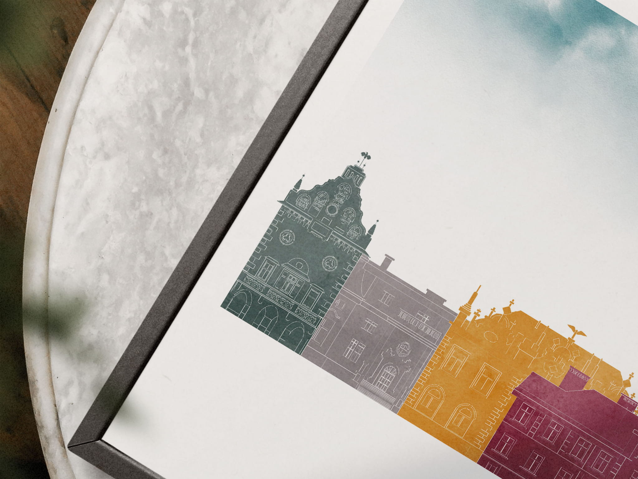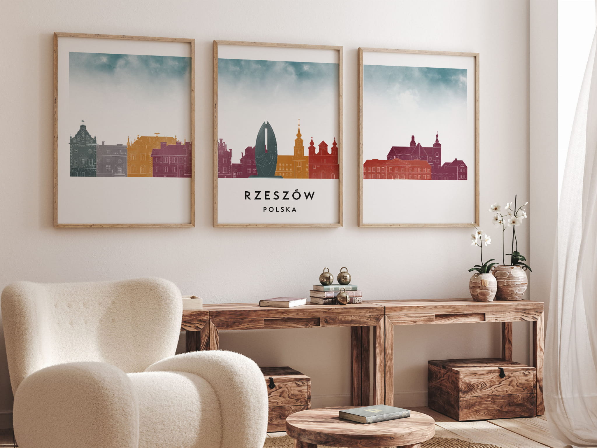 Plakat skylines TRYPTYK Rzeszów w stylu Watercolor/ Akwarelowym