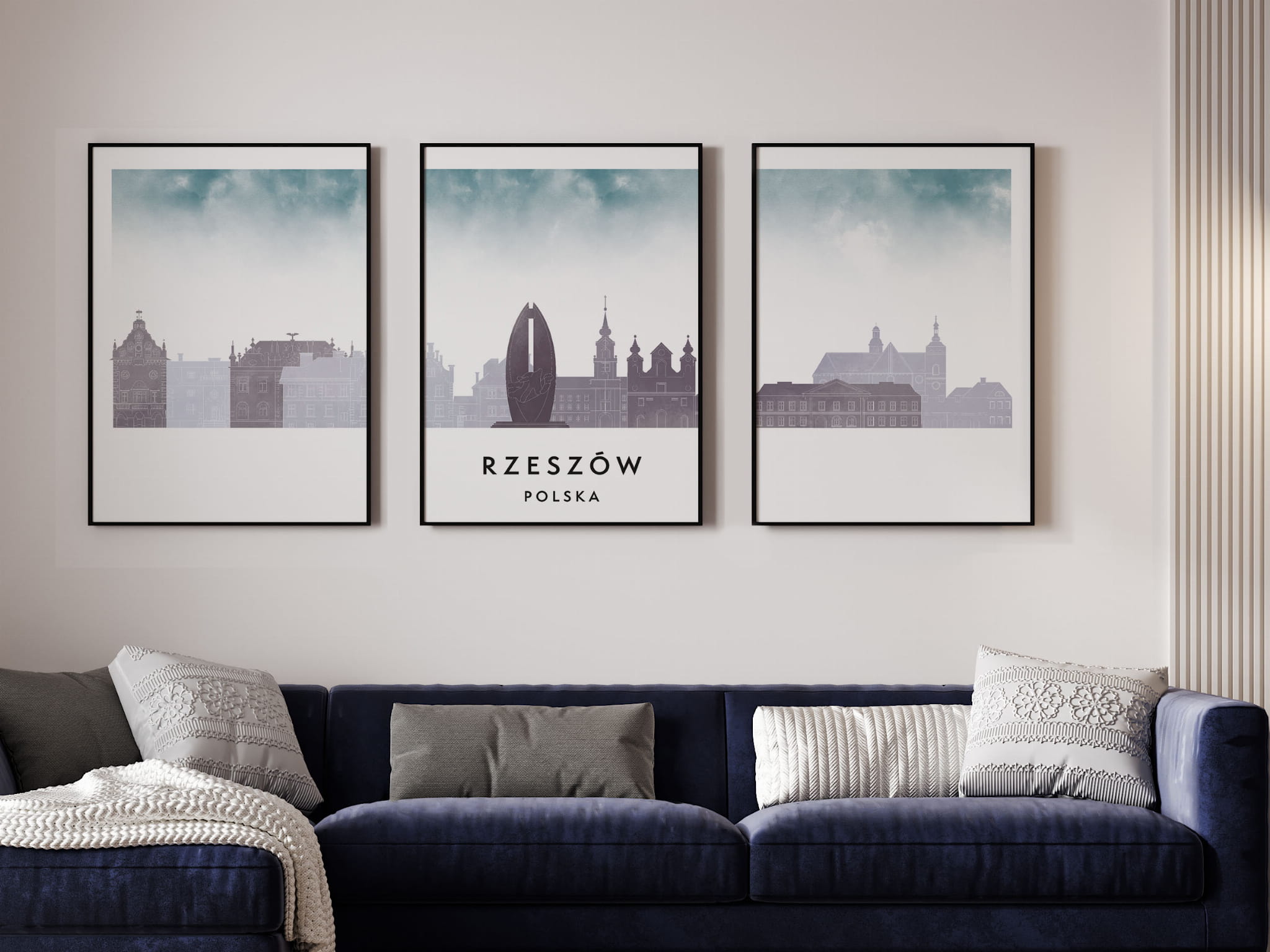 Plakat skylines TRYPTYK Rzeszów w stylu Watercolor/ Akwarelowym
