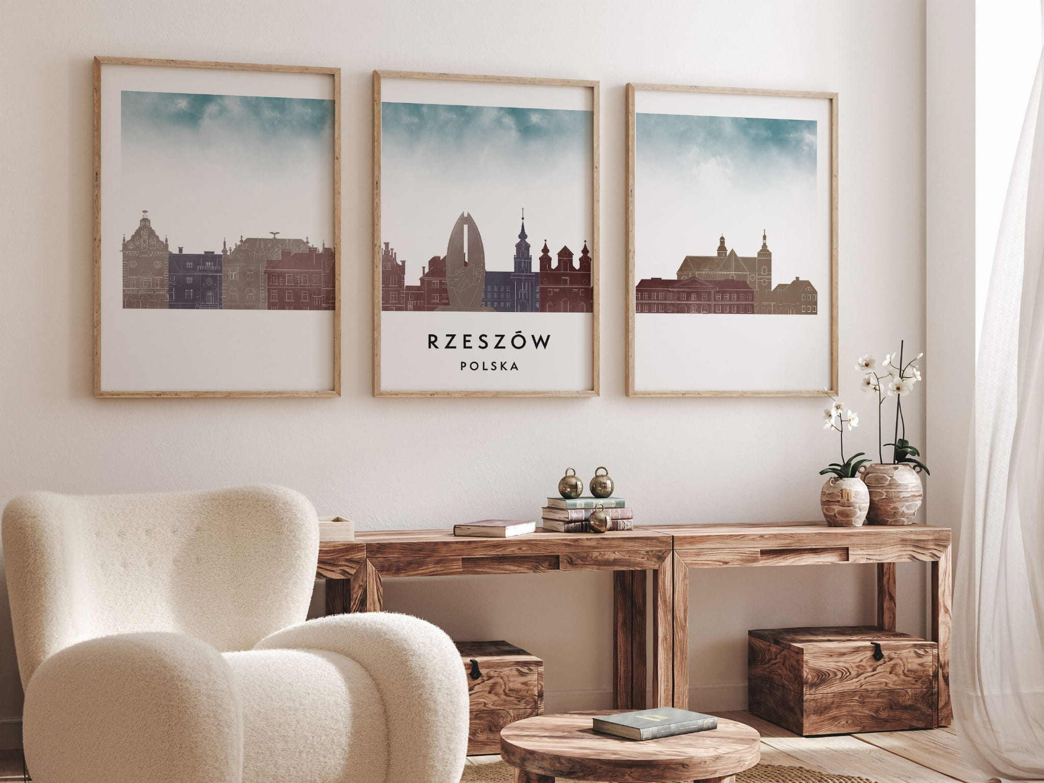 Plakat skylines TRYPTYK Rzeszów w stylu Watercolor/ Akwarelowym