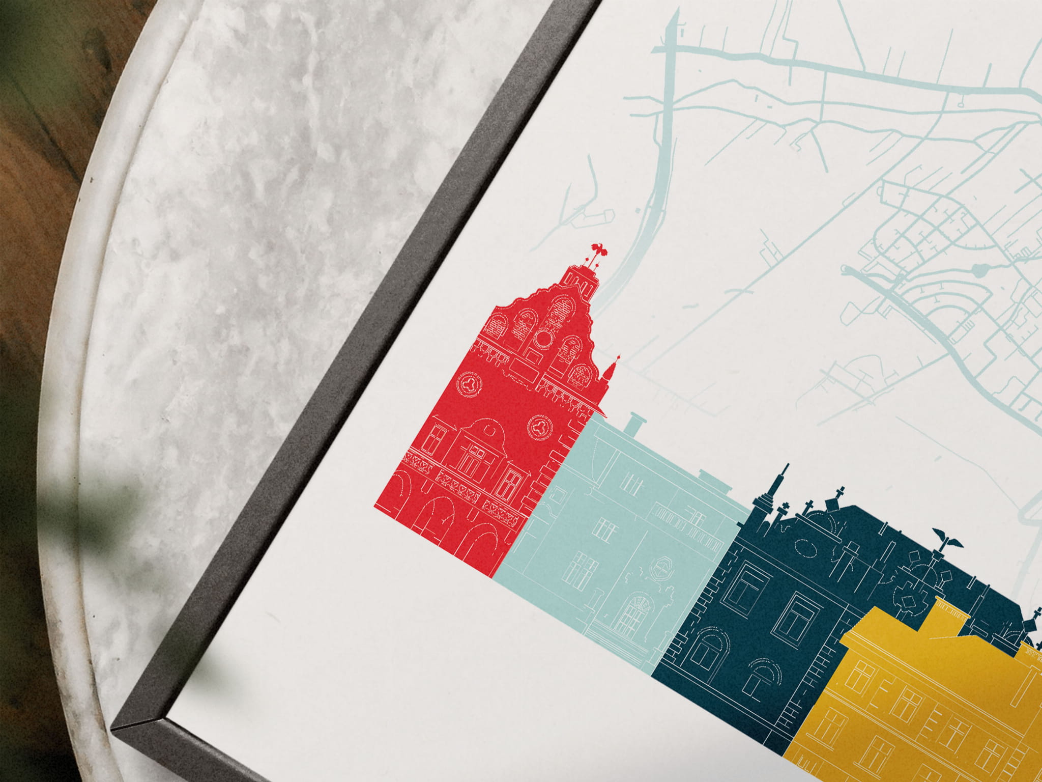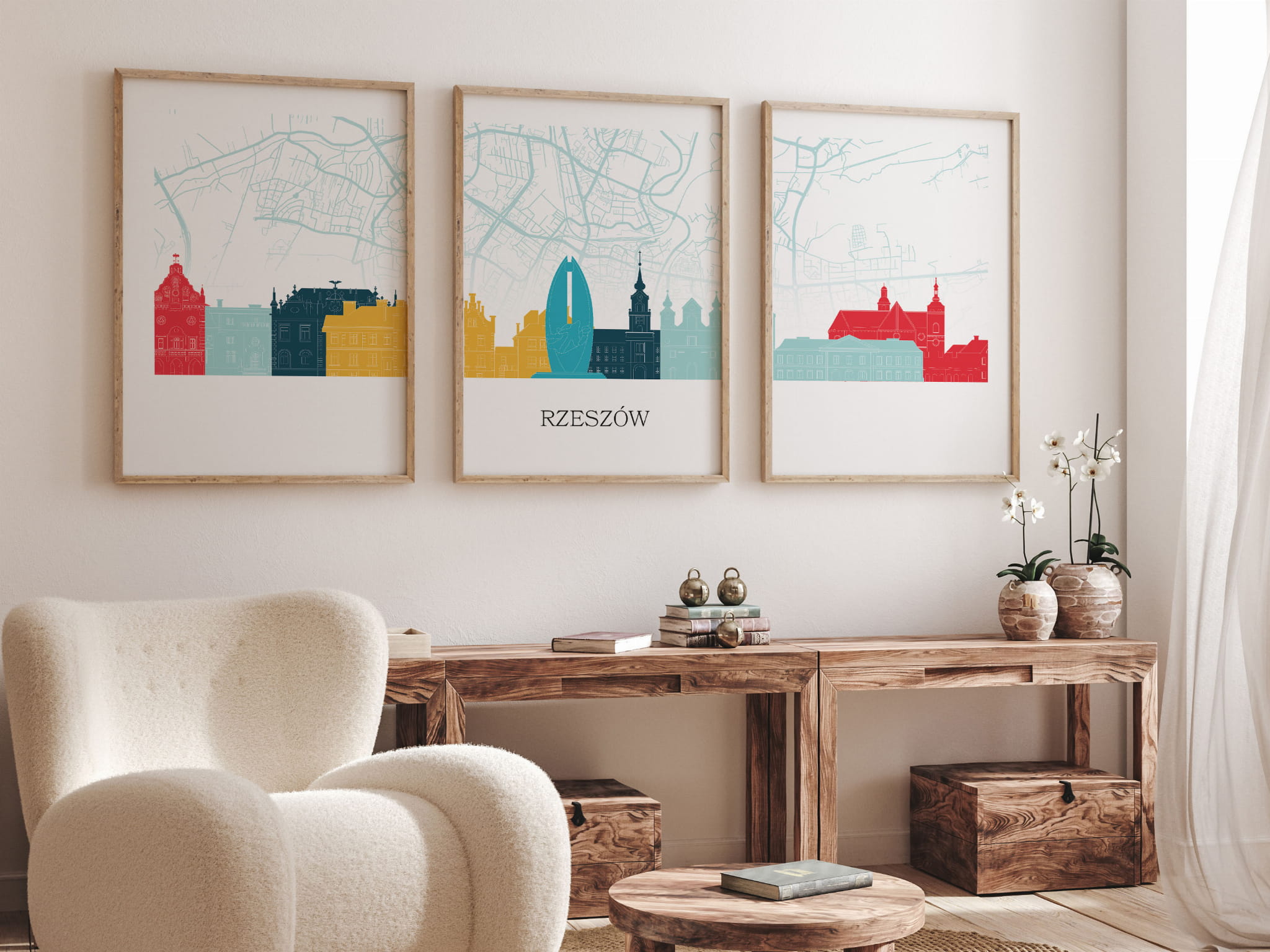 Plakat skylines TRYPTYK Rzeszów z mapą