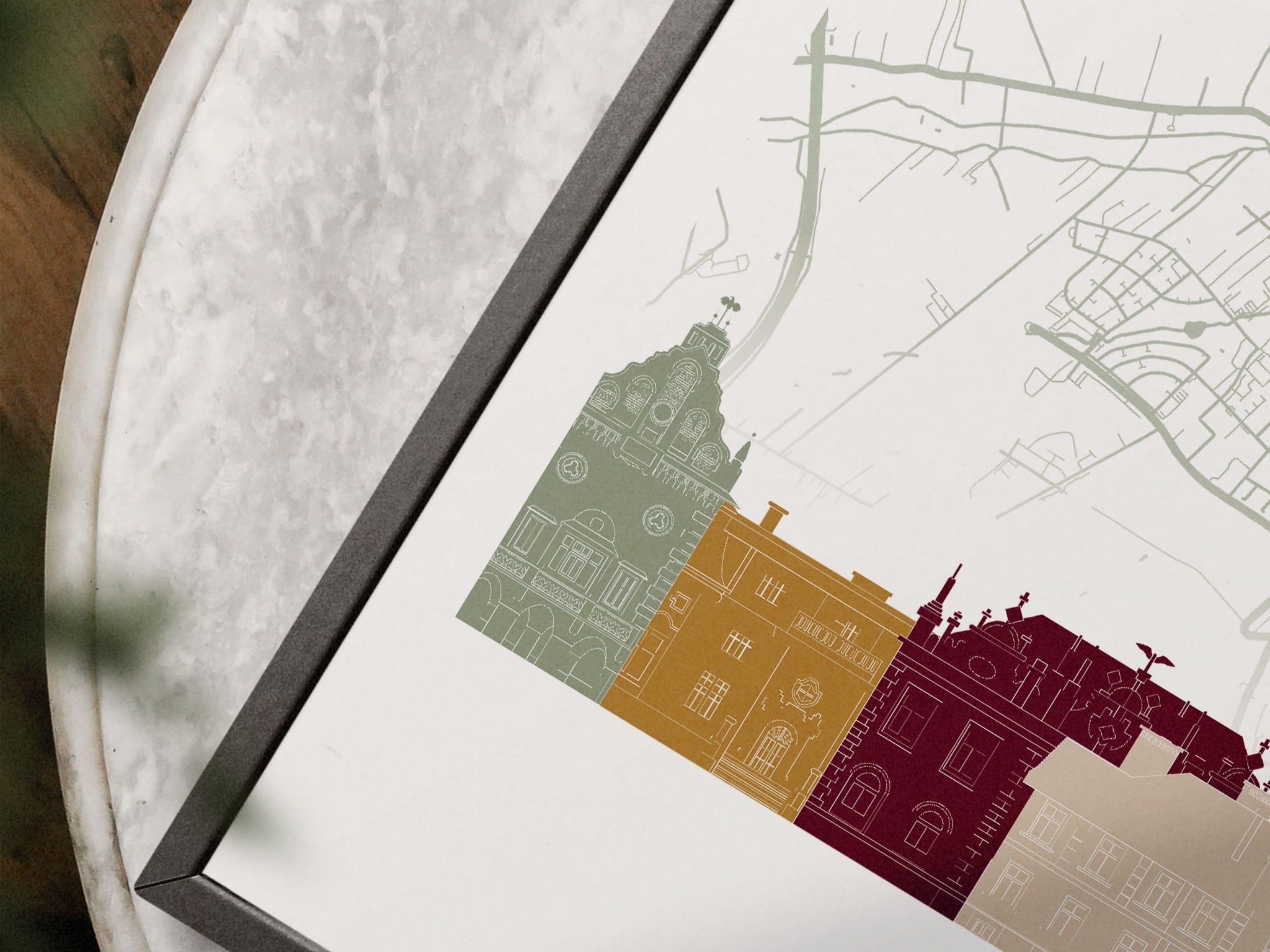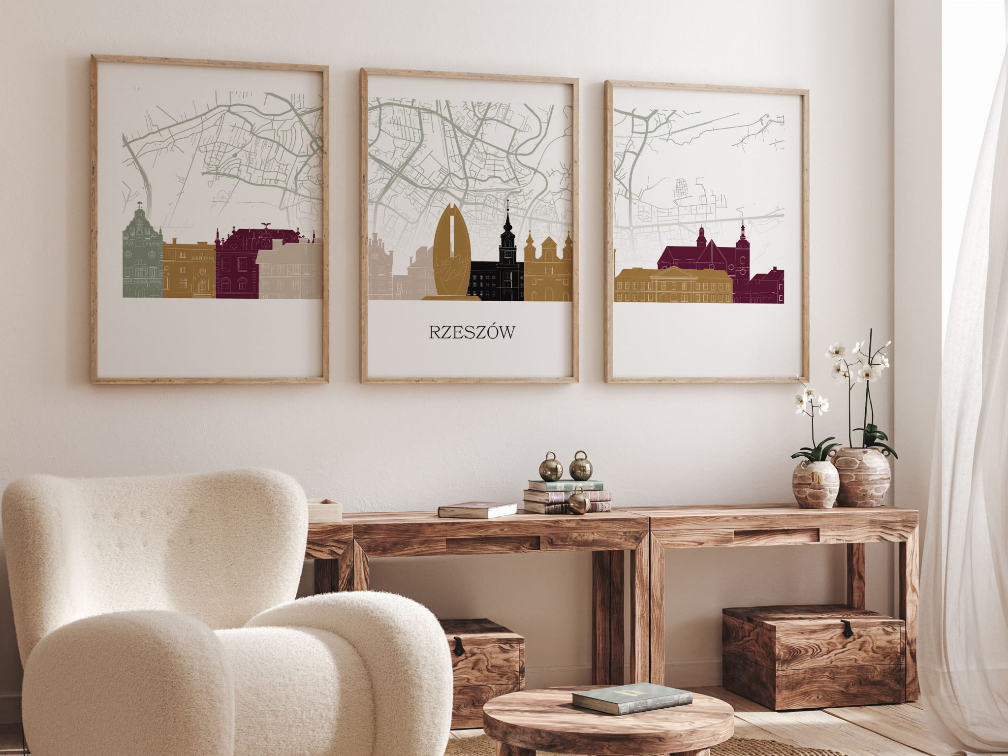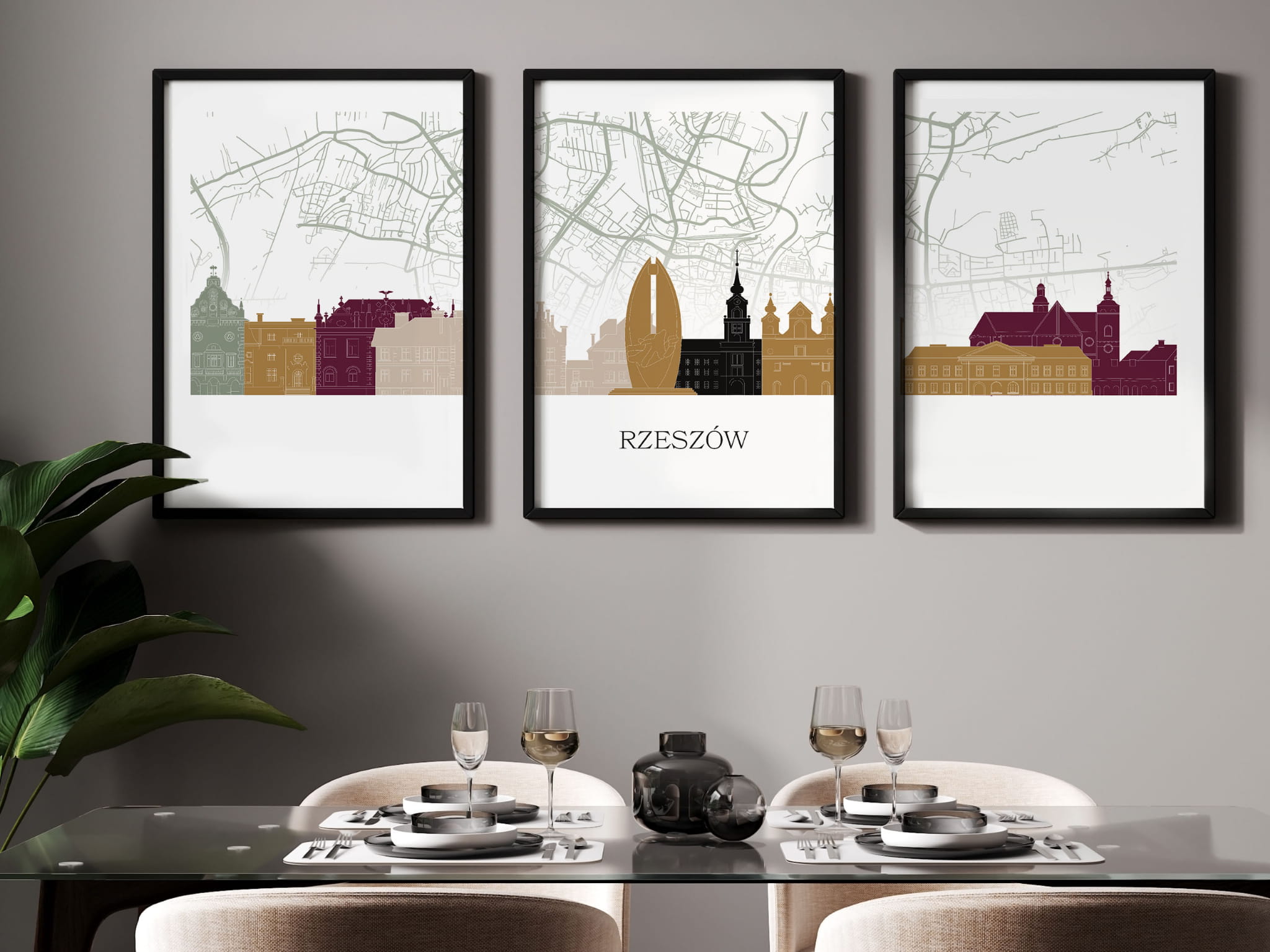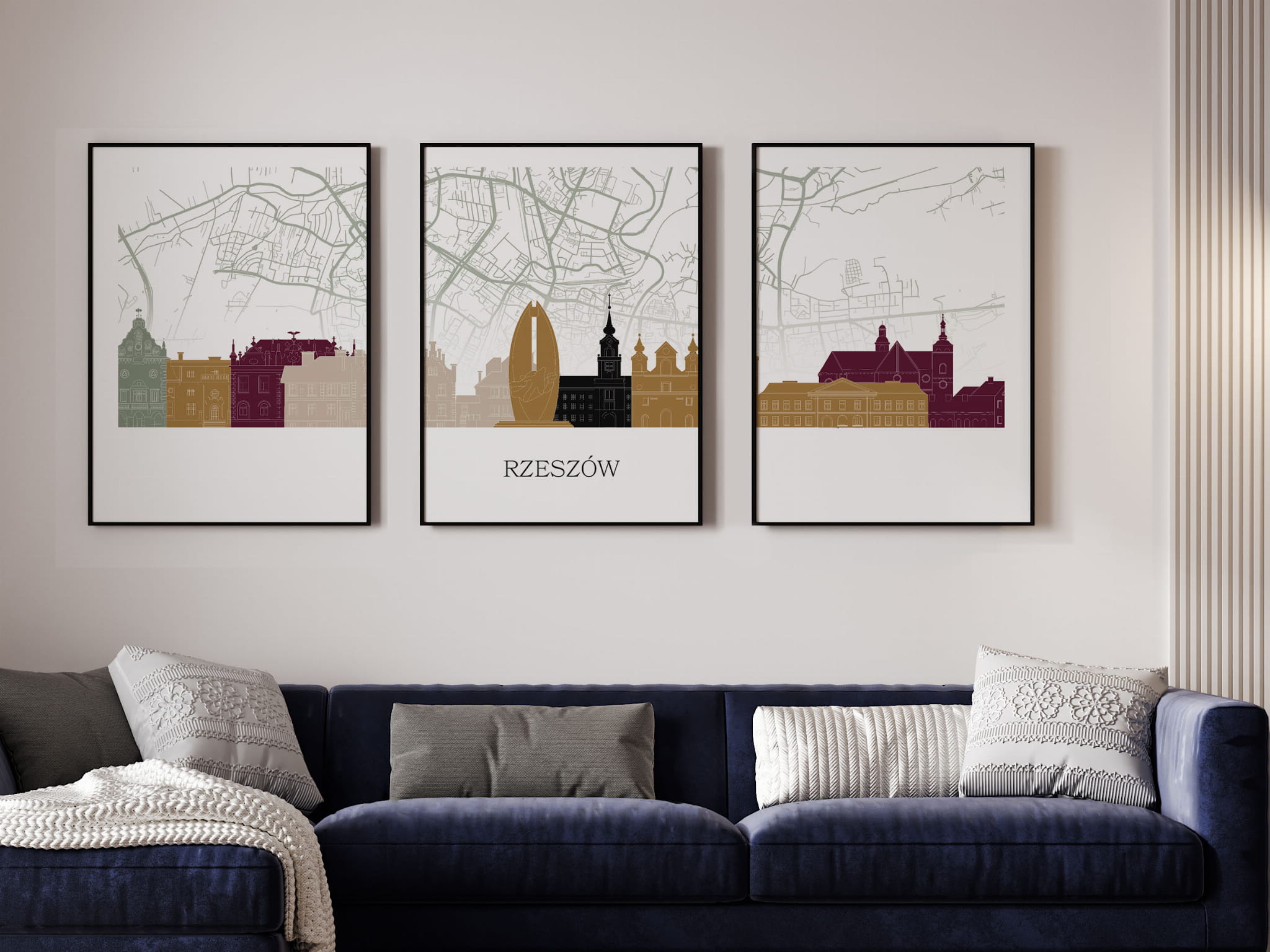 Plakat skylines TRYPTYK Rzeszów z mapą