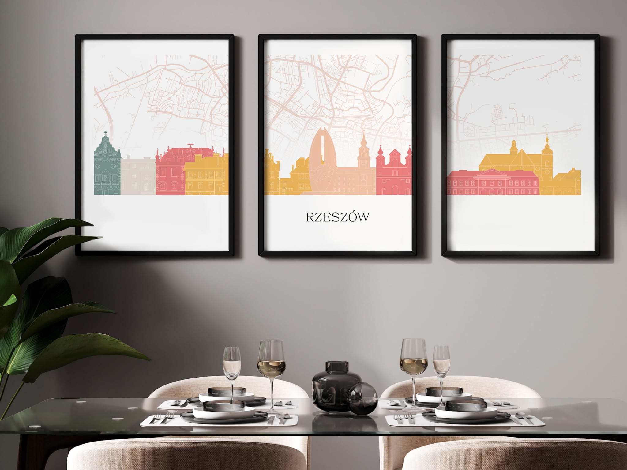 Plakat skylines TRYPTYK Rzeszów z mapą