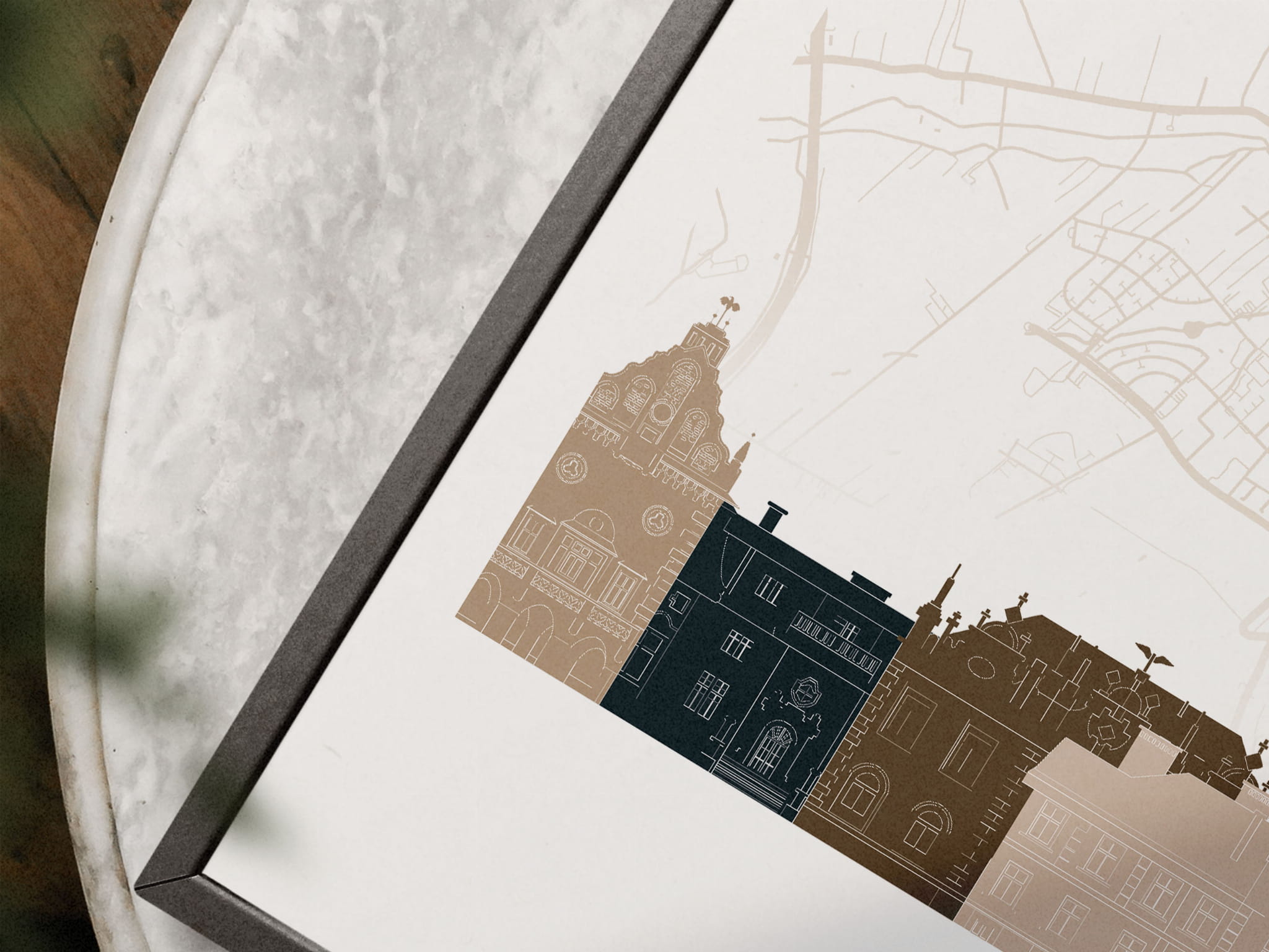 Plakat skylines TRYPTYK Rzeszów z mapą