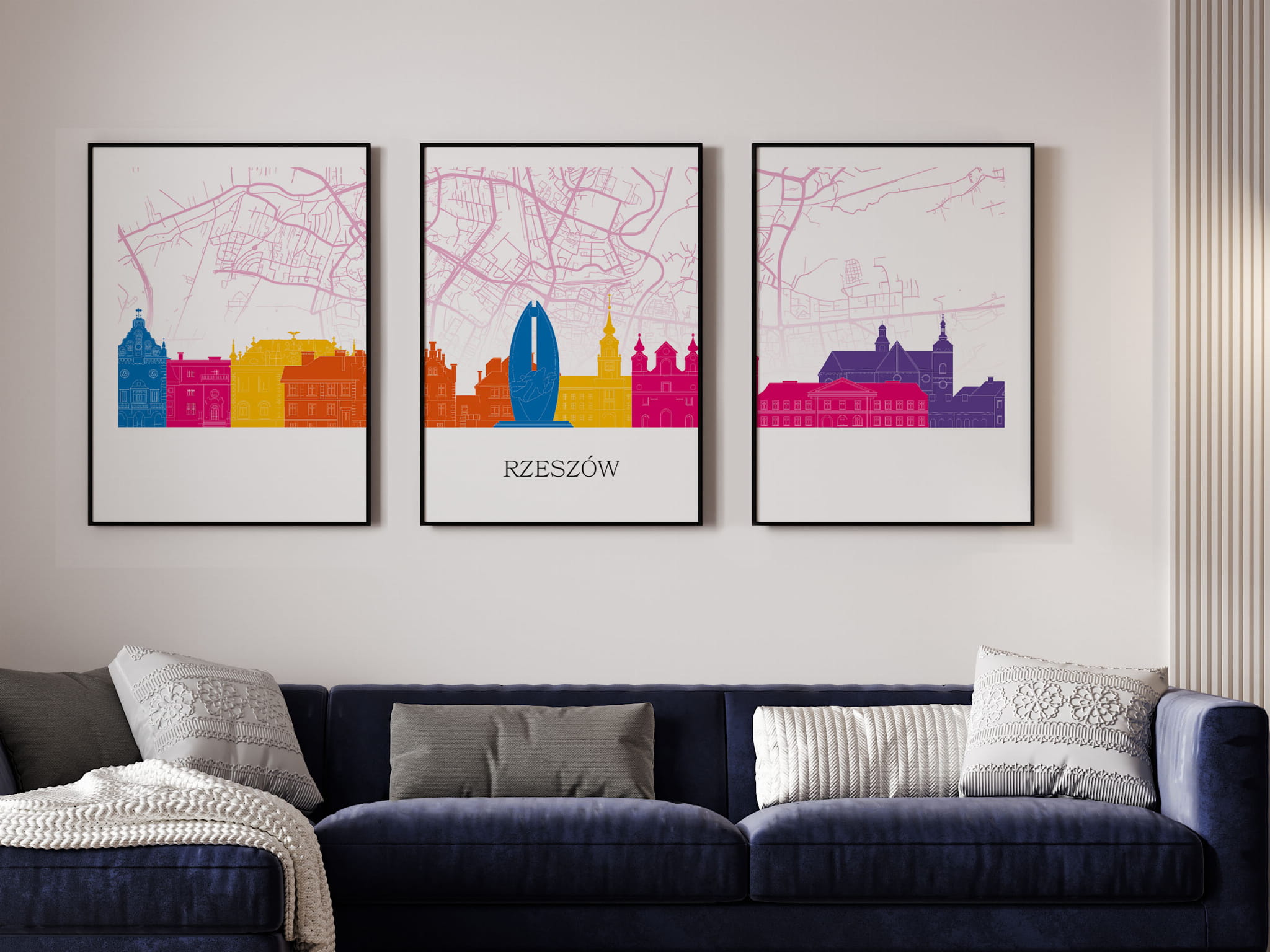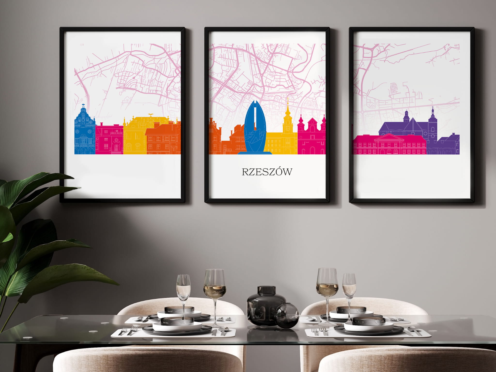 Plakat skylines TRYPTYK Rzeszów z mapą