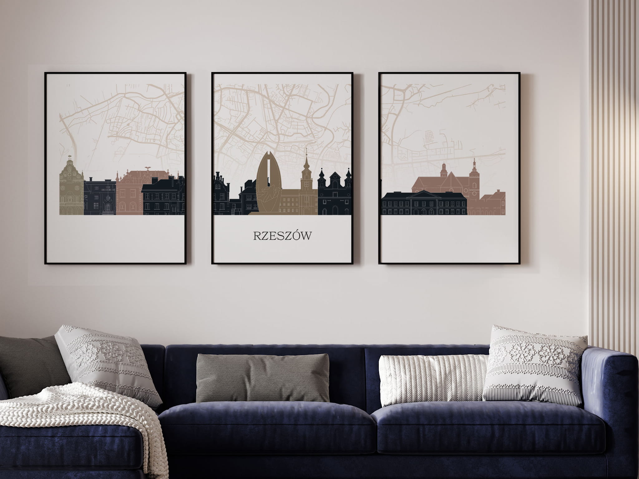 Plakat skylines TRYPTYK Rzeszów z mapą