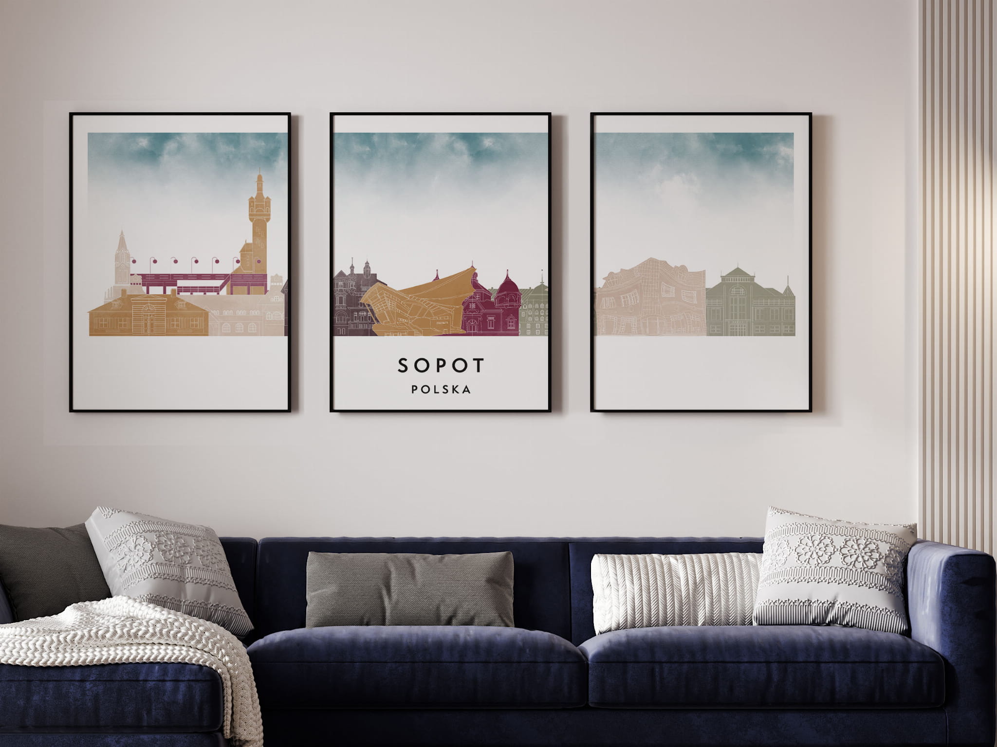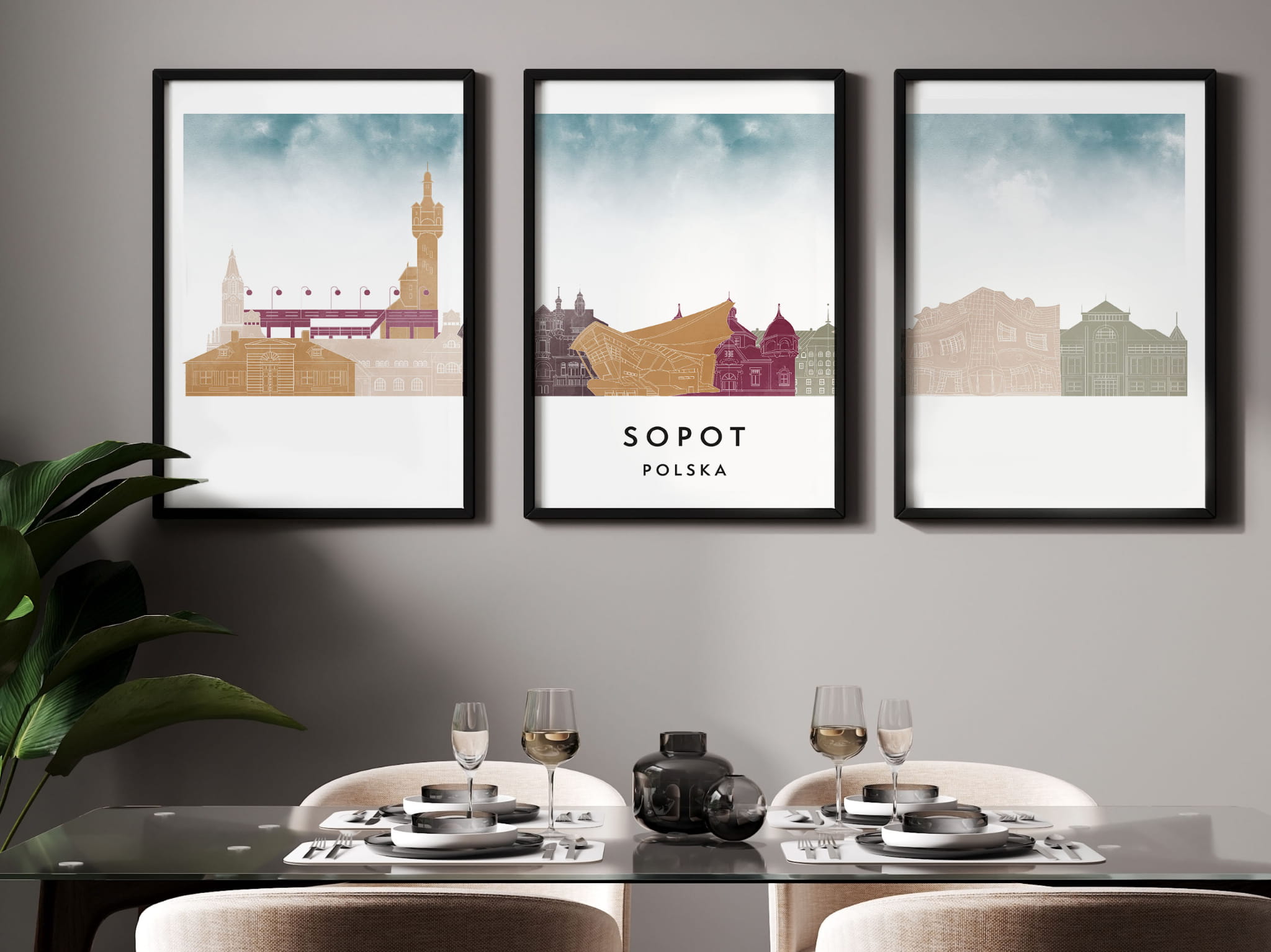 Plakat skylines TRYPTYK Sopot w stylu Watercolor/ Akwarelowym