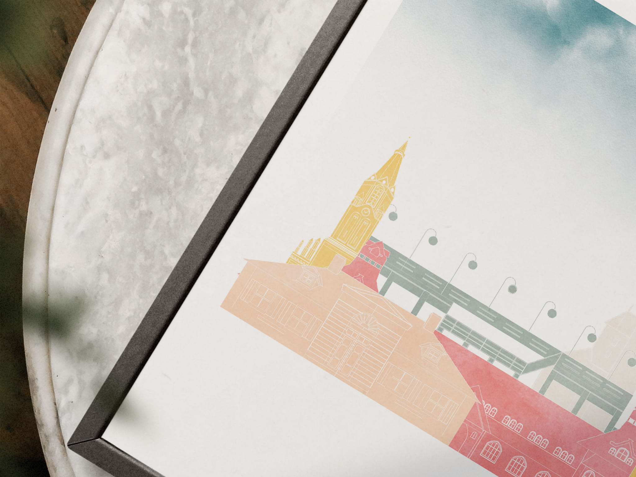 Plakat skylines TRYPTYK Sopot w stylu Watercolor/ Akwarelowym