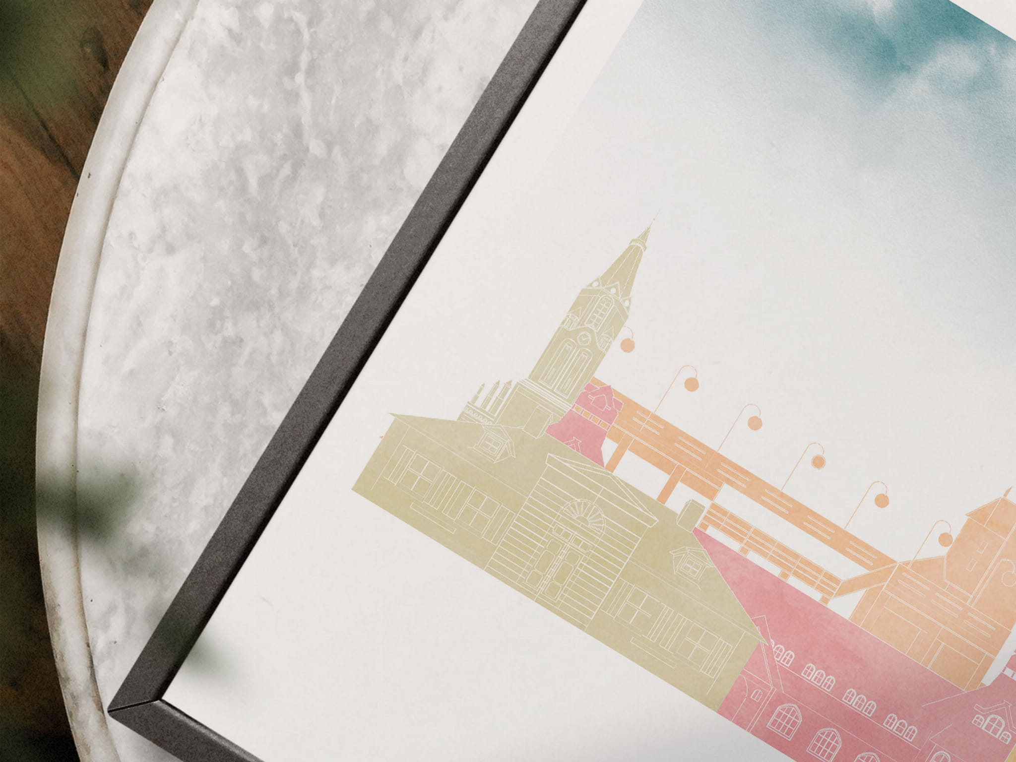 Projektując plakaty z tej serii, postawiliśmy na kolory i charakterystyczne symbole miast.  Taki zestaw podróżniczych plakatów będzie doskonałym uzupełnieniem pomieszczenia.