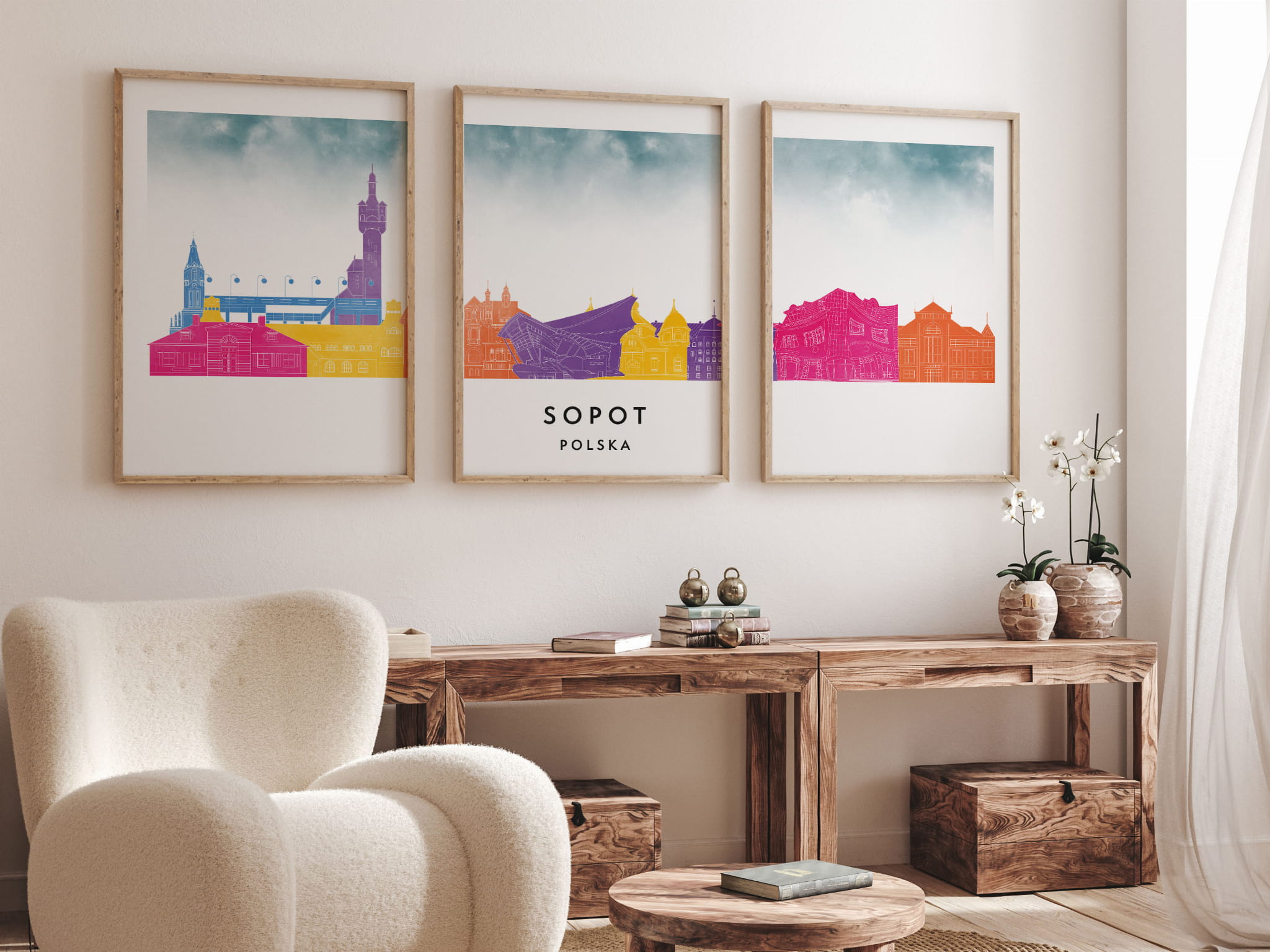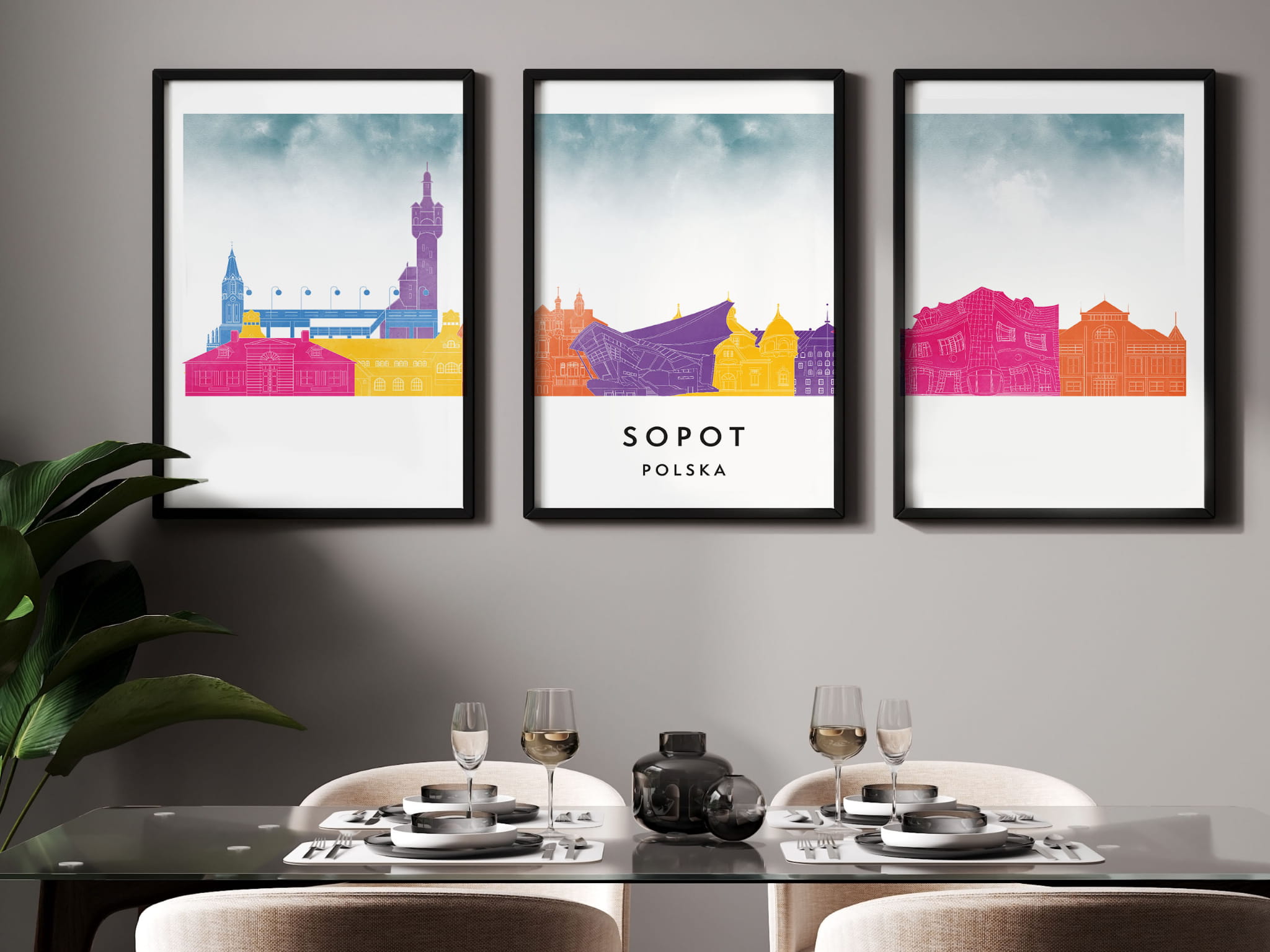 Plakat skylines TRYPTYK Sopot w stylu Watercolor/ Akwarelowym