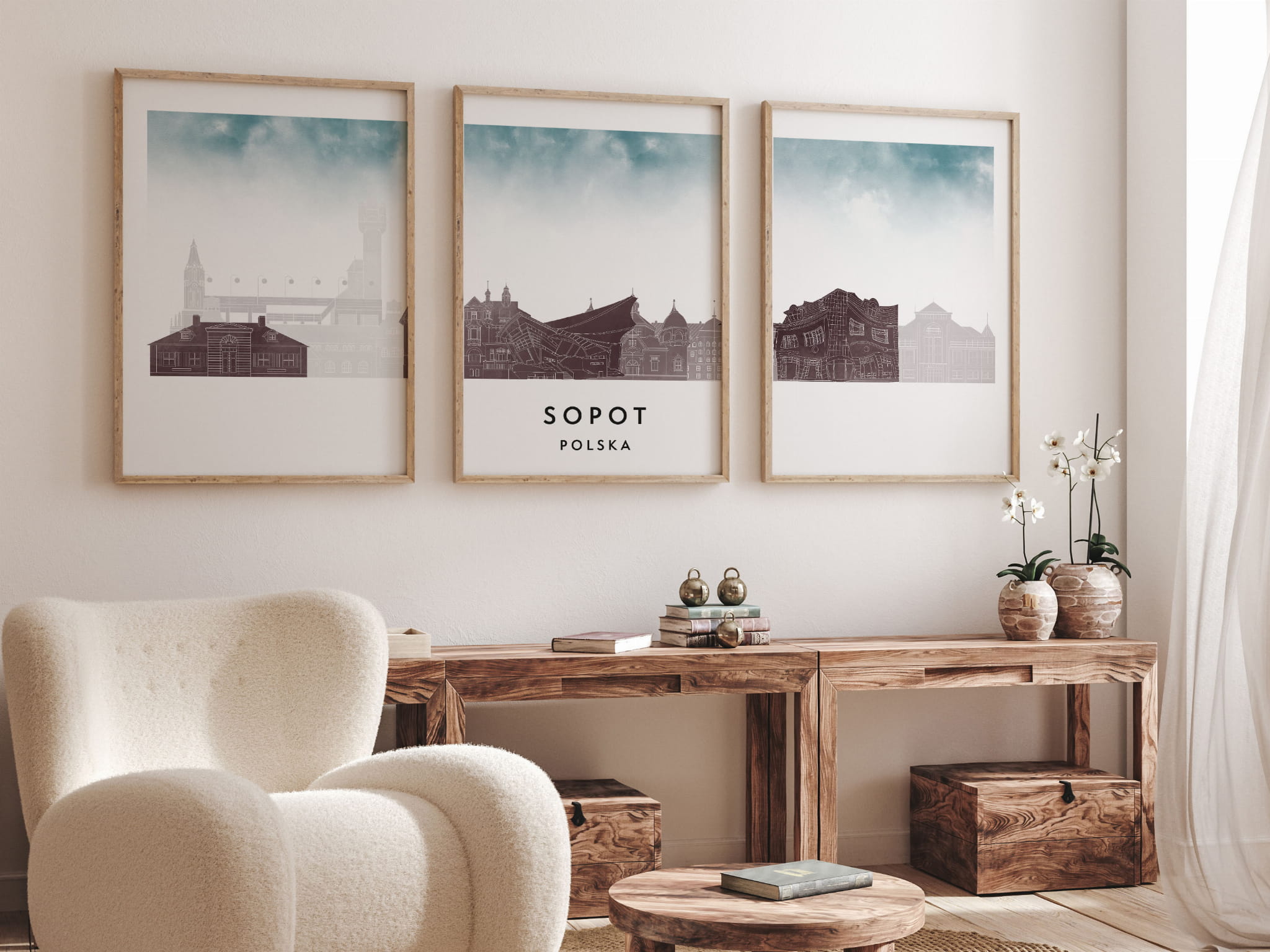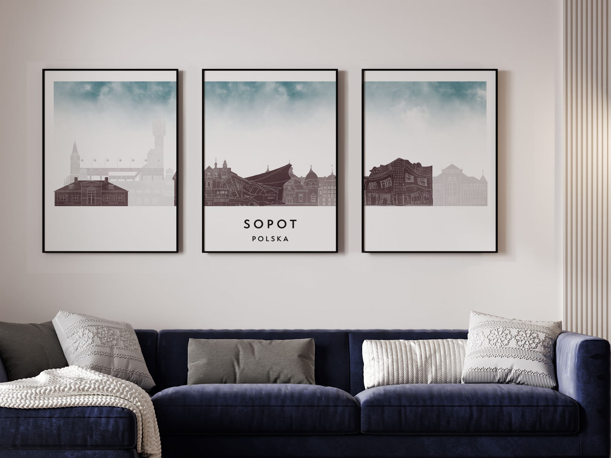 Plakat skylines TRYPTYK Sopot w stylu Watercolor/ Akwarelowym