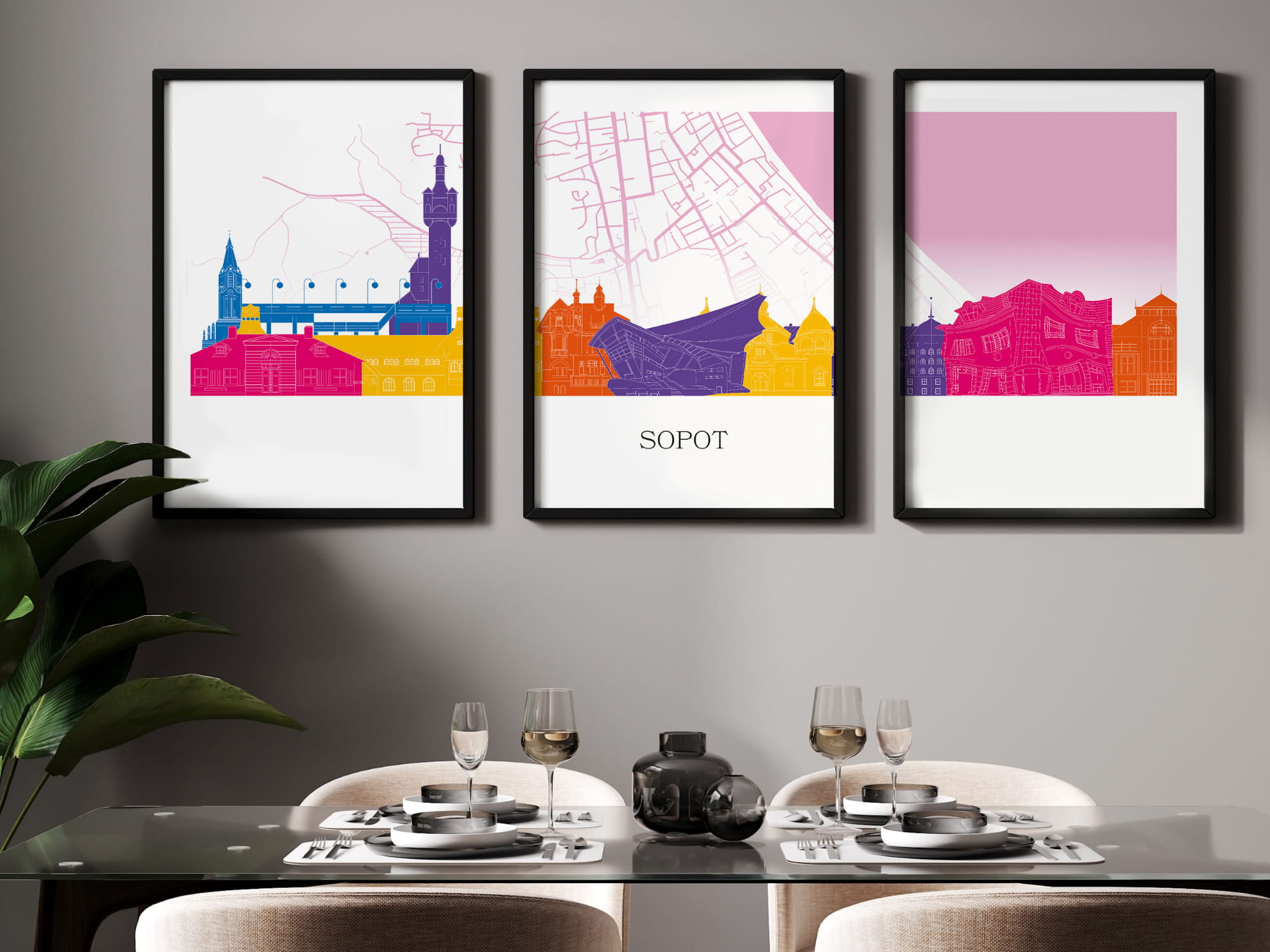 Plakat skylines TRYPTYK Sopot z mapą