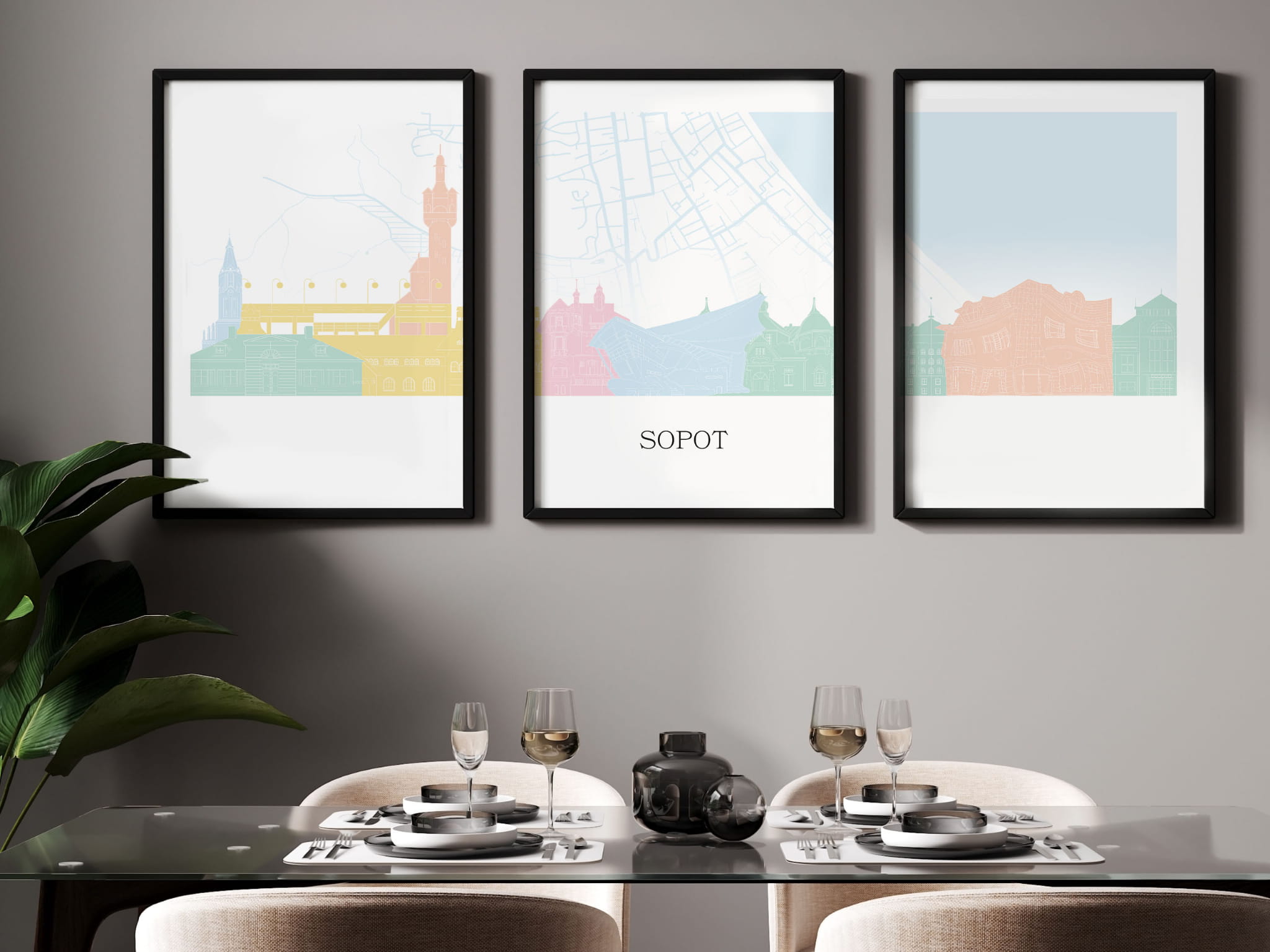 Plakat skylines TRYPTYK Sopot z mapą
