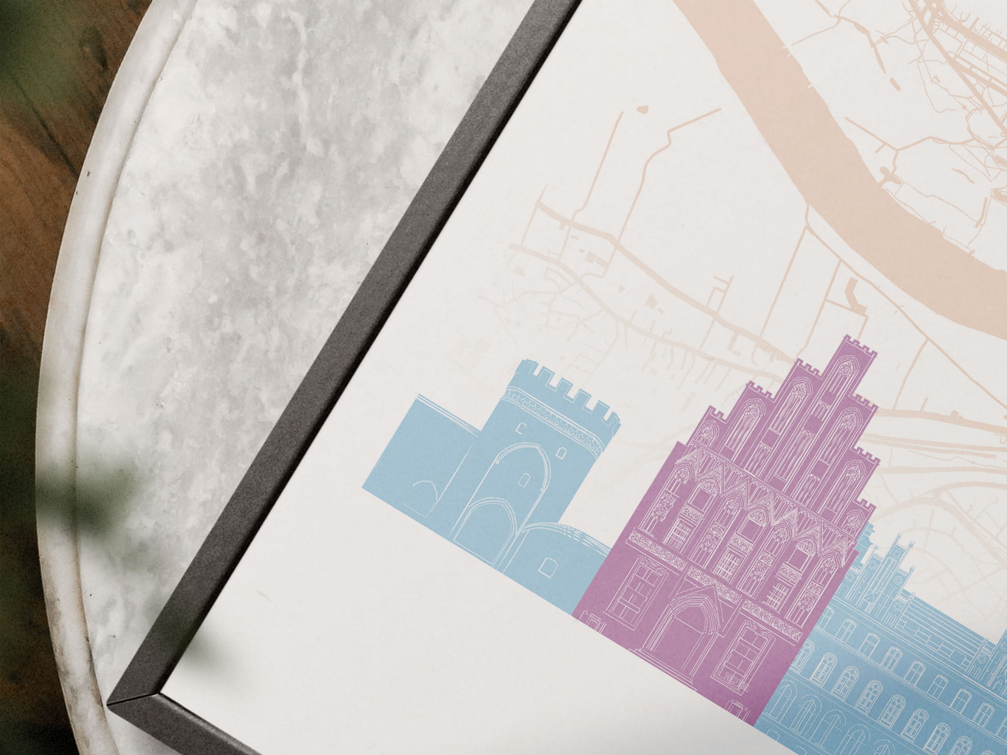 Plakat skylines TRYPTYK Toruń z mapą