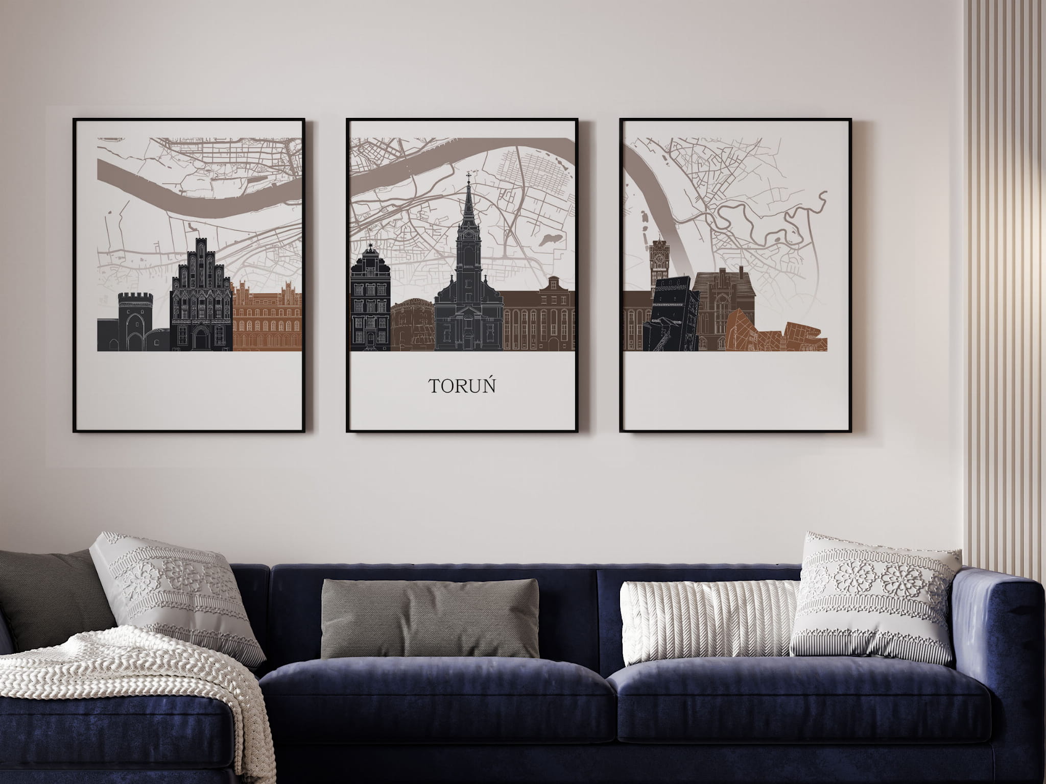 Plakat skylines TRYPTYK Toruń z mapą