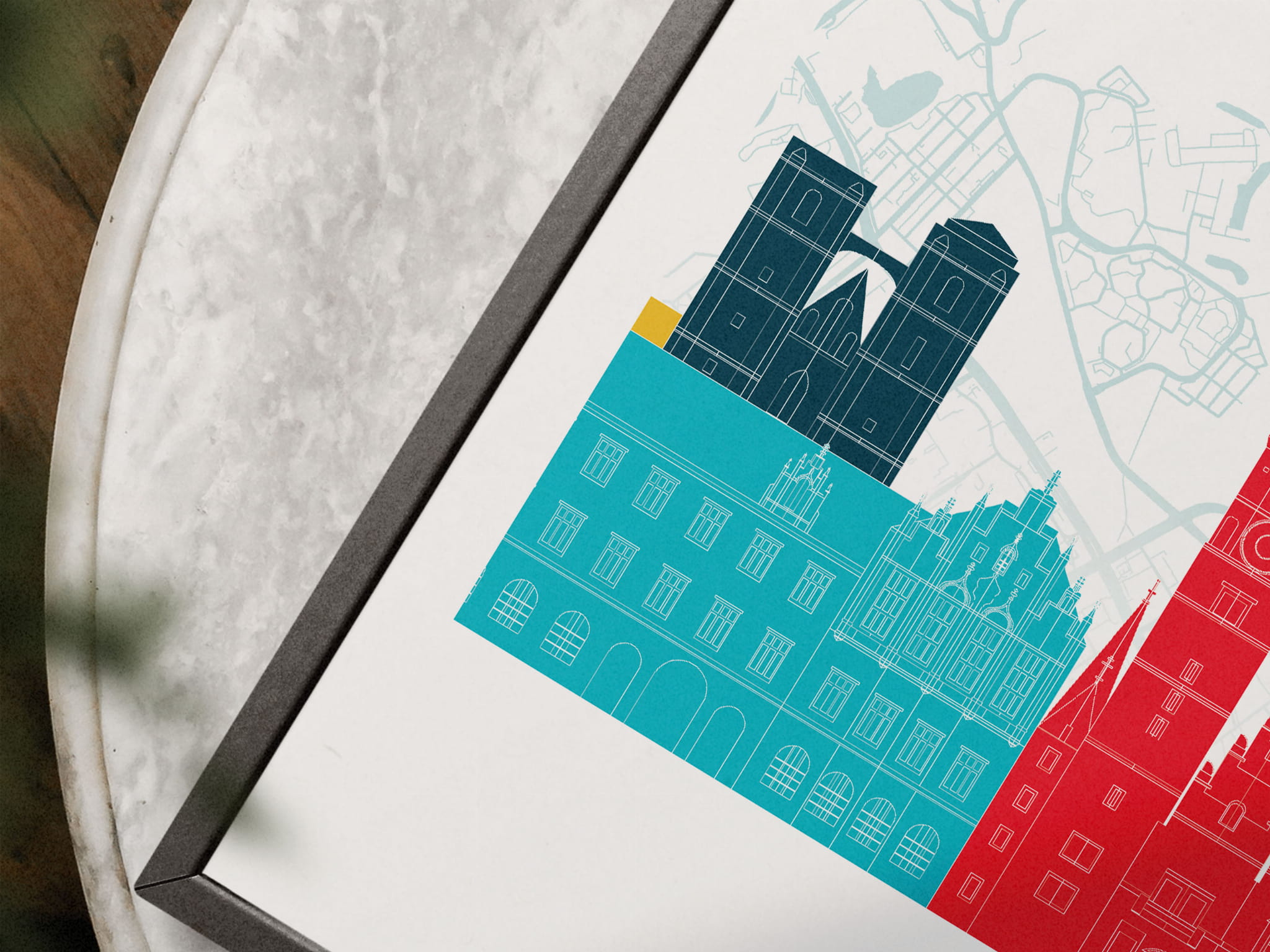 Projektując plakaty z tej serii, postawiliśmy na kolory i charakterystyczne symbole miast.  Taki zestaw podróżniczych plakatów będzie doskonałym uzupełnieniem pomieszczenia.