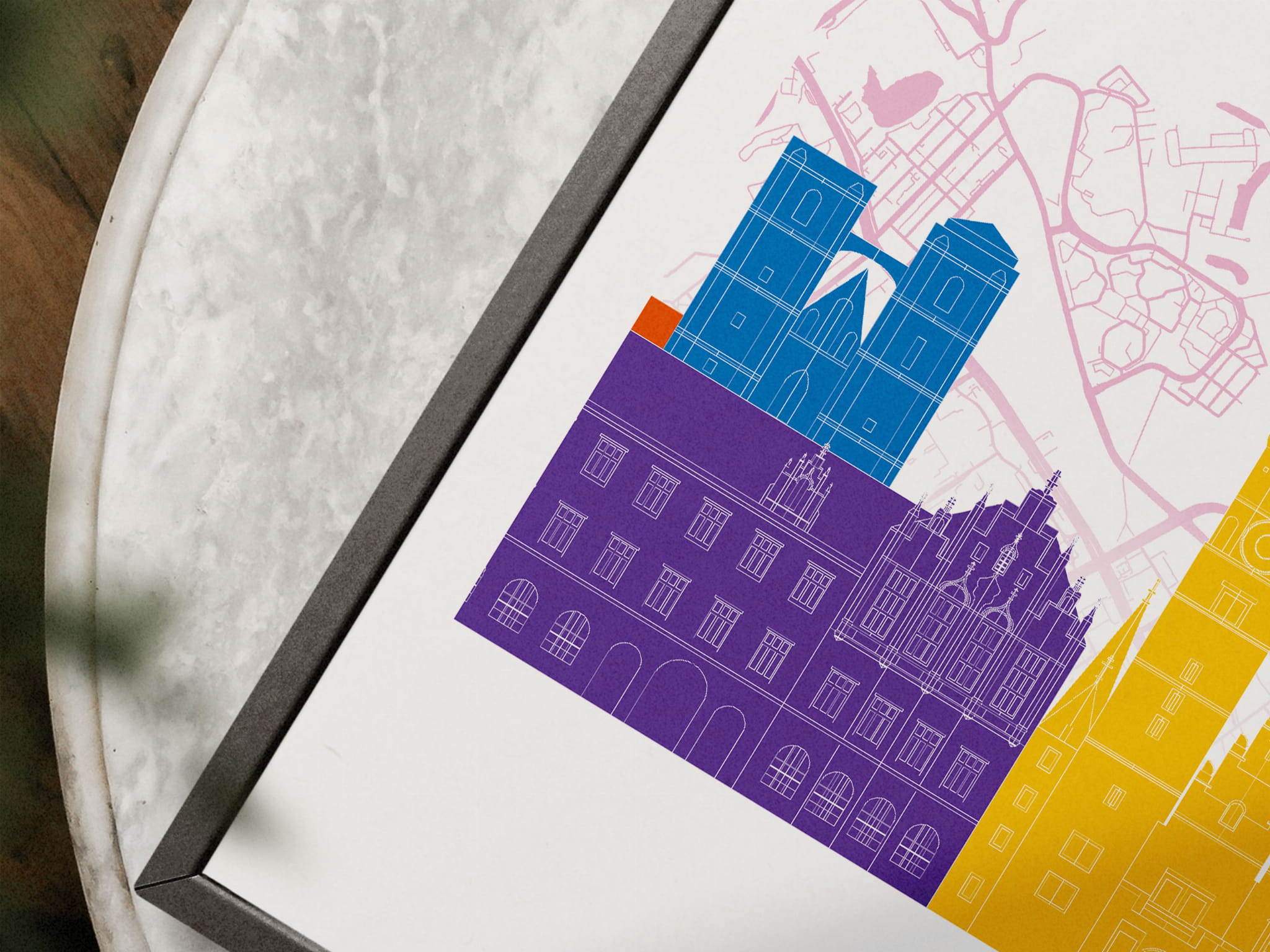 Projektując plakaty z tej serii, postawiliśmy na kolory i charakterystyczne symbole miast.  Taki zestaw podróżniczych plakatów będzie doskonałym uzupełnieniem pomieszczenia.