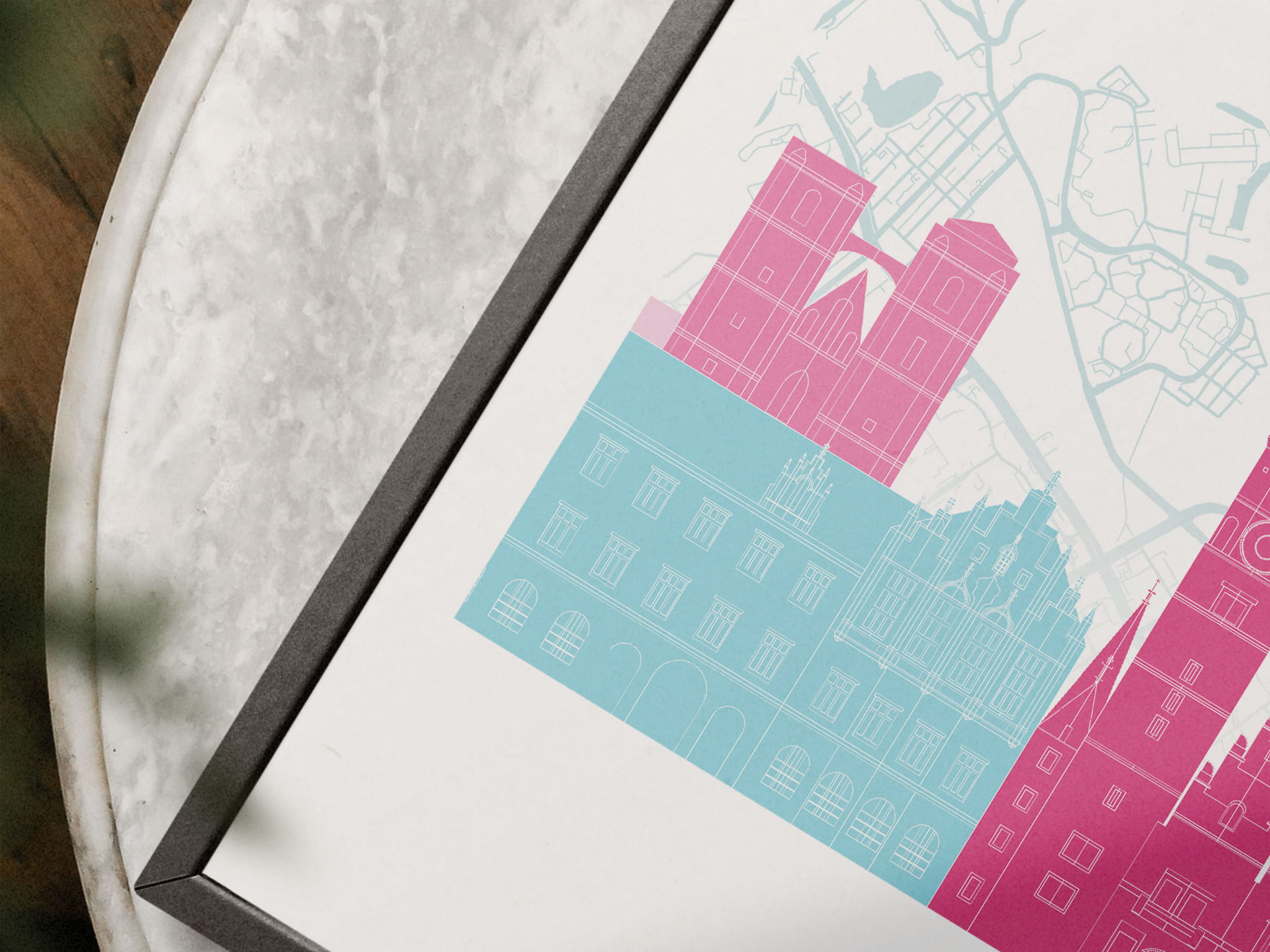 Projektując plakaty z tej serii, postawiliśmy na kolory i charakterystyczne symbole miast.  Taki zestaw podróżniczych plakatów będzie doskonałym uzupełnieniem pomieszczenia.