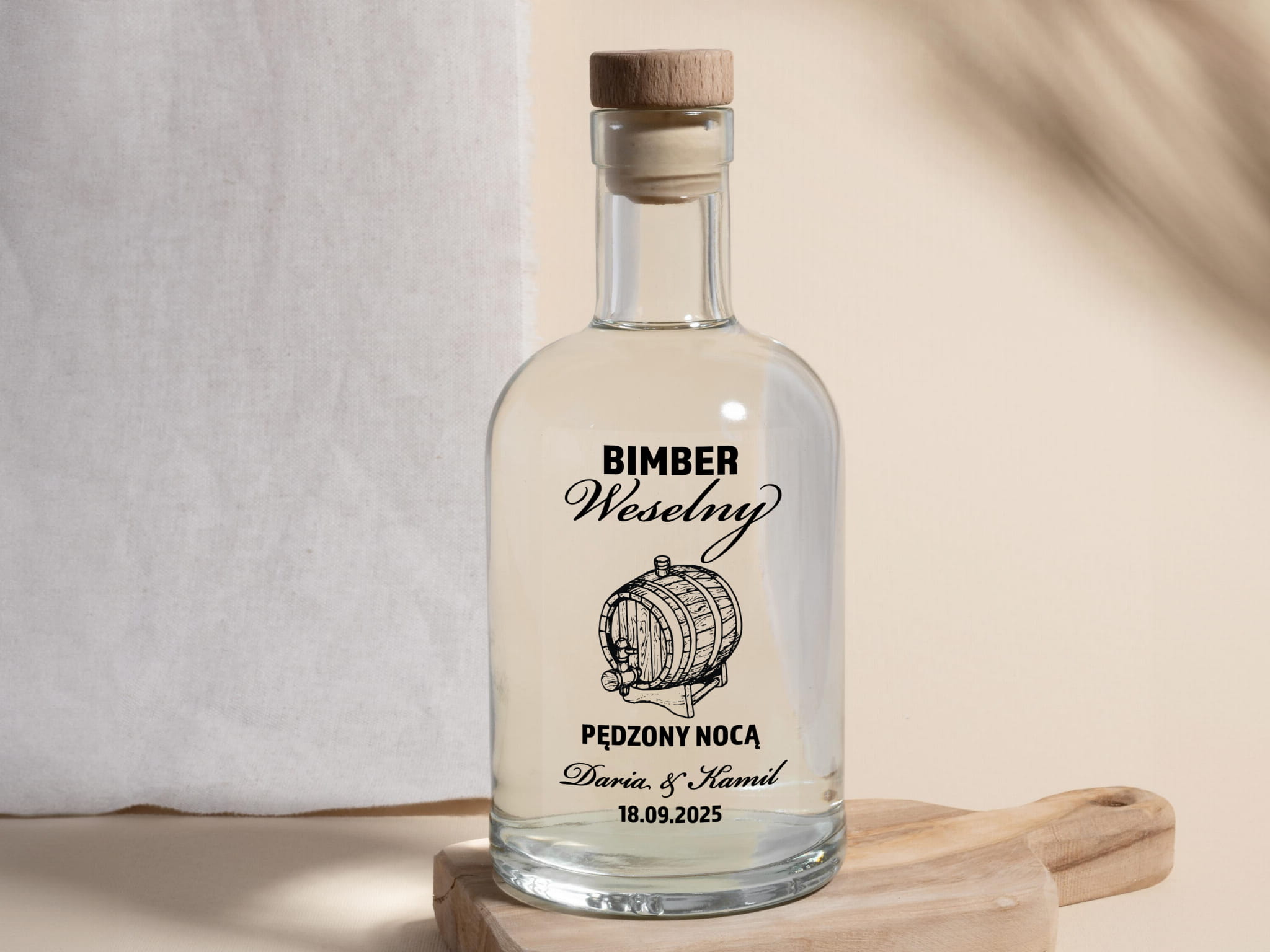 - Personalizacja: Dodaj imiona pary młodej, datę ślubu lub dowolny tekst, aby stworzyć niepowtarzalne naklejki na alkohol weselny.