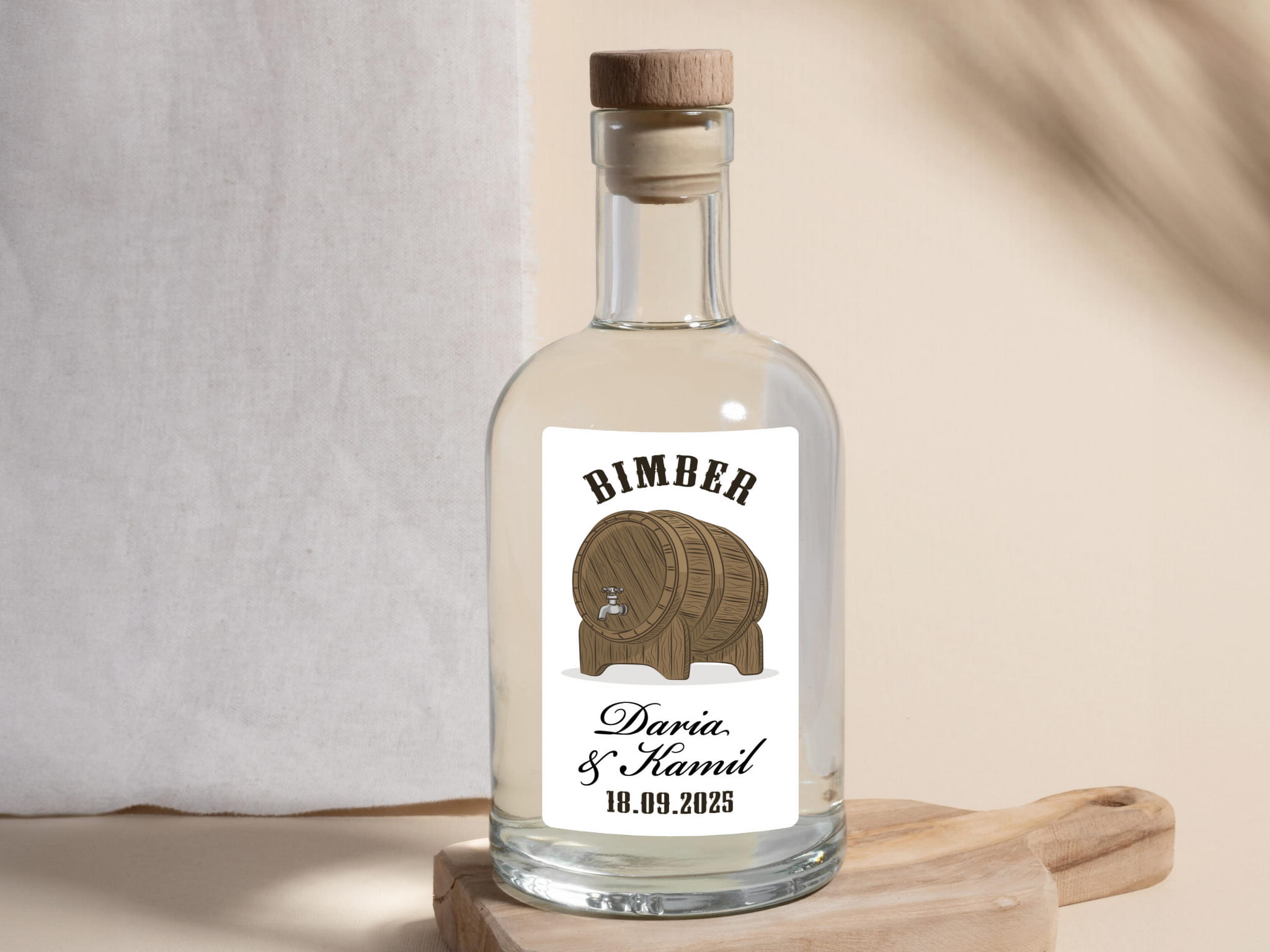 - Personalizacja: Dodaj imiona pary młodej, datę ślubu lub dowolny tekst, aby stworzyć niepowtarzalne naklejki na alkohol weselny.