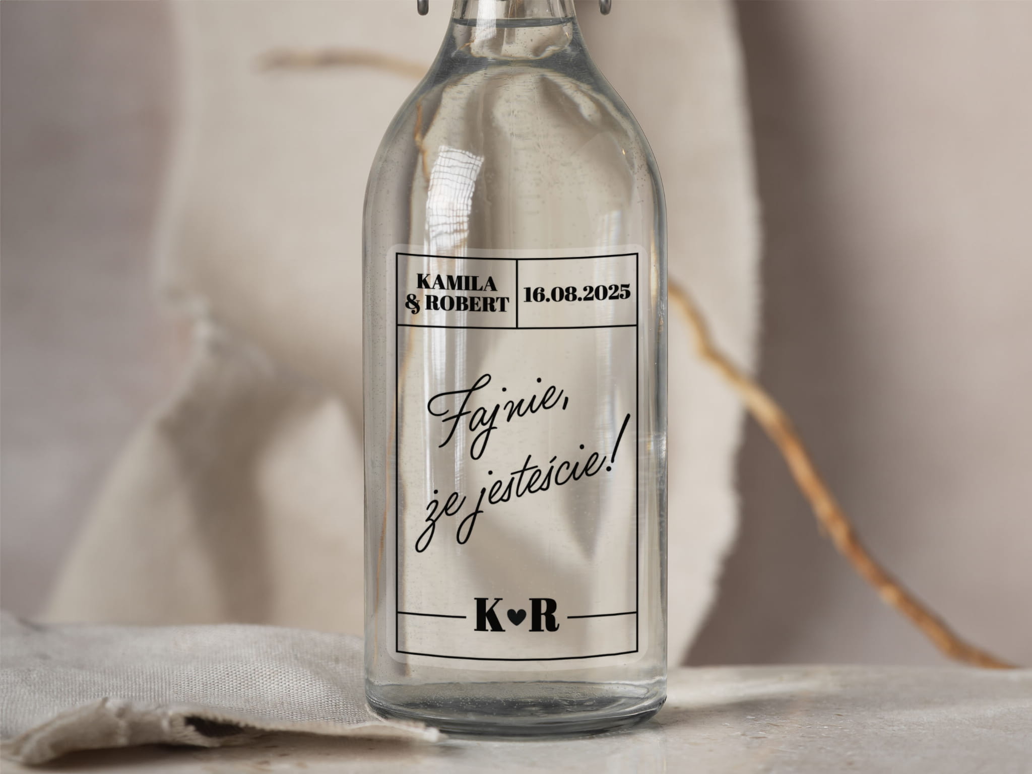 - Personalizacja: Dodaj imiona pary młodej, datę ślubu lub dowolny tekst, aby stworzyć niepowtarzalne naklejki na alkohol weselny.