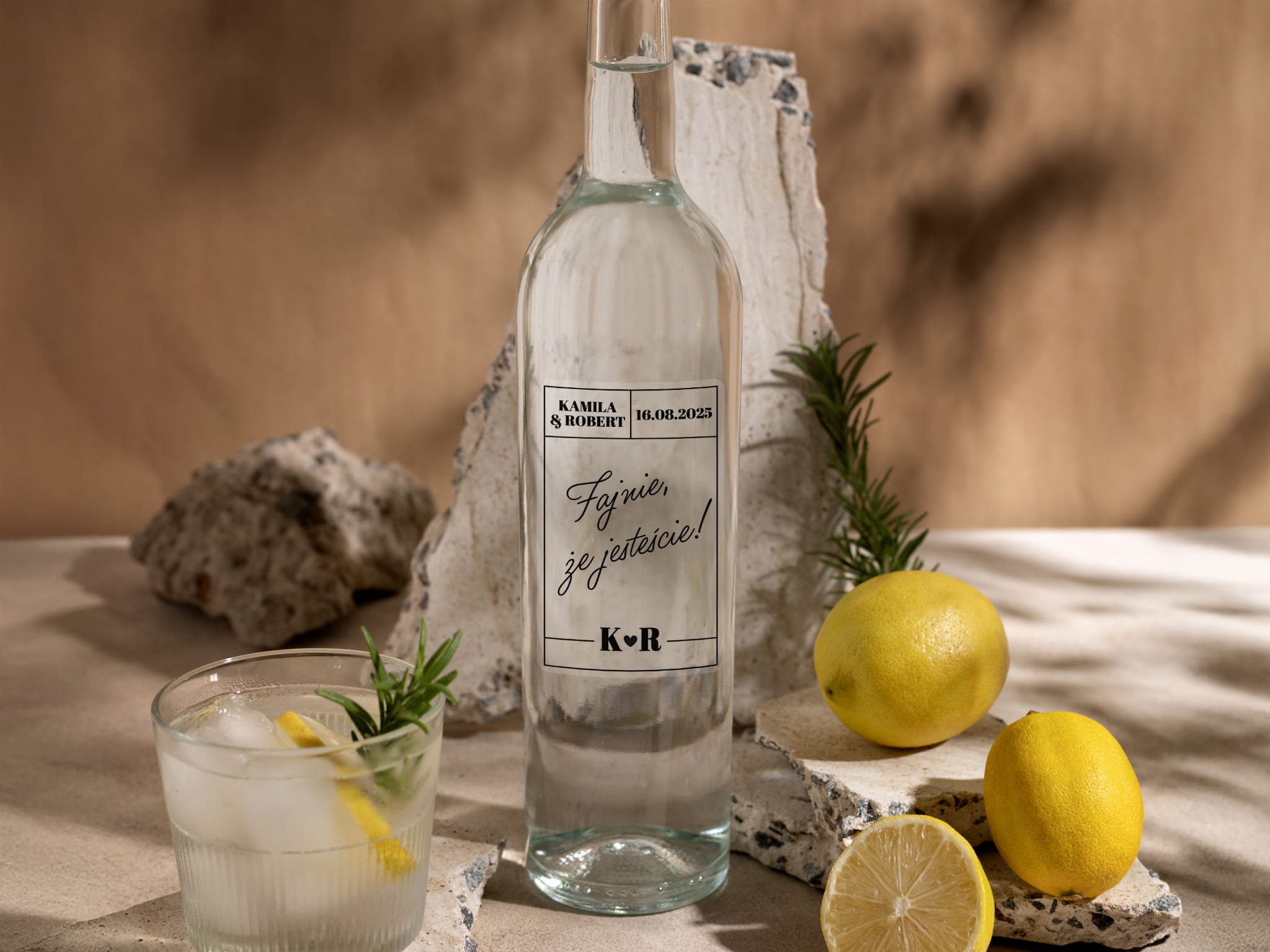 - Stylowy dodatek na stół weselny: Podkreśl elegancję swojej uroczystości, ozdabiając wódkę weselną etykietami dopasowanymi do Twojego motywu weselnego.