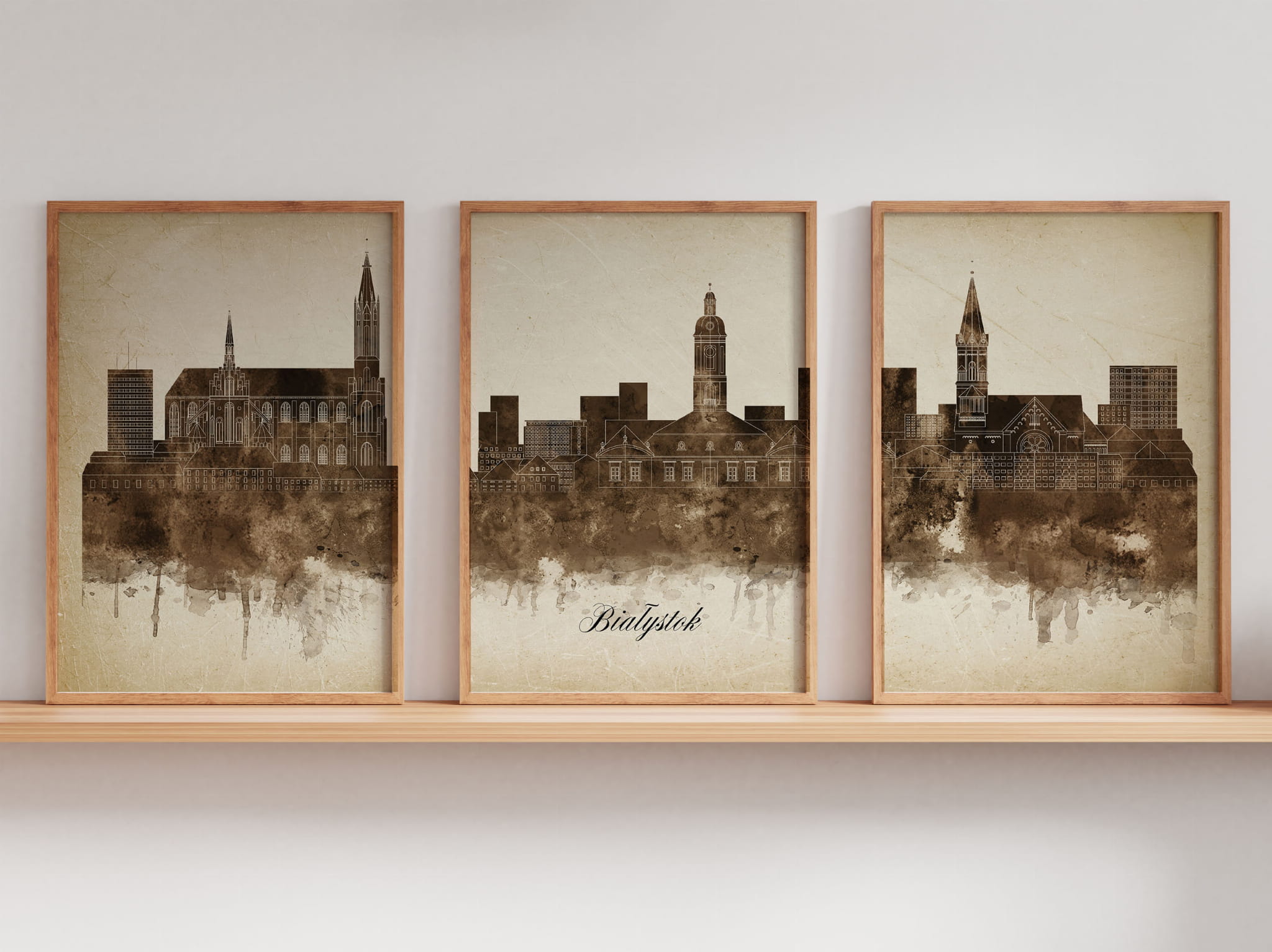 Tryptyk Skylines Białystok w stylu Vintage, Styl akwarelowy