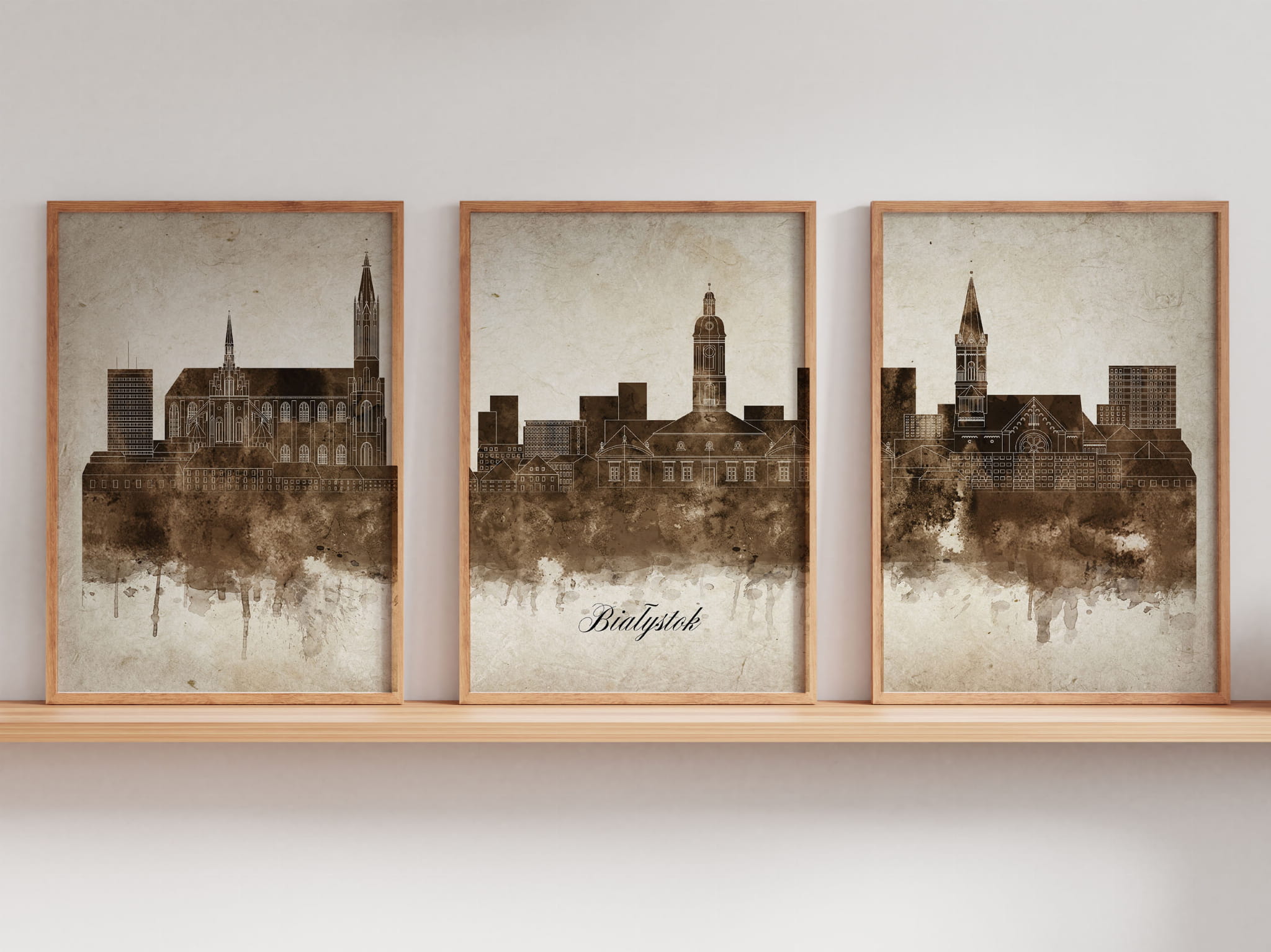 Tryptyk Skylines Białystok w stylu Vintage, Styl akwarelowy