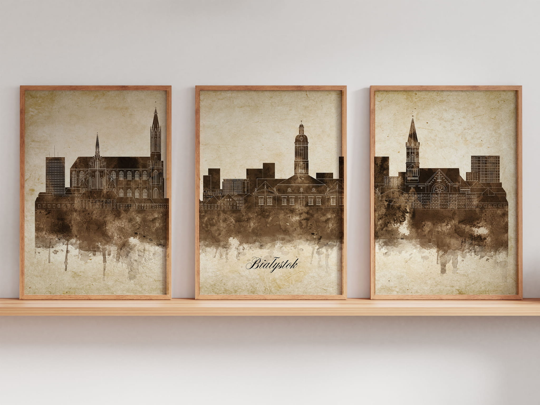 Tryptyk Skylines Białystok w stylu Vintage, Styl akwarelowy