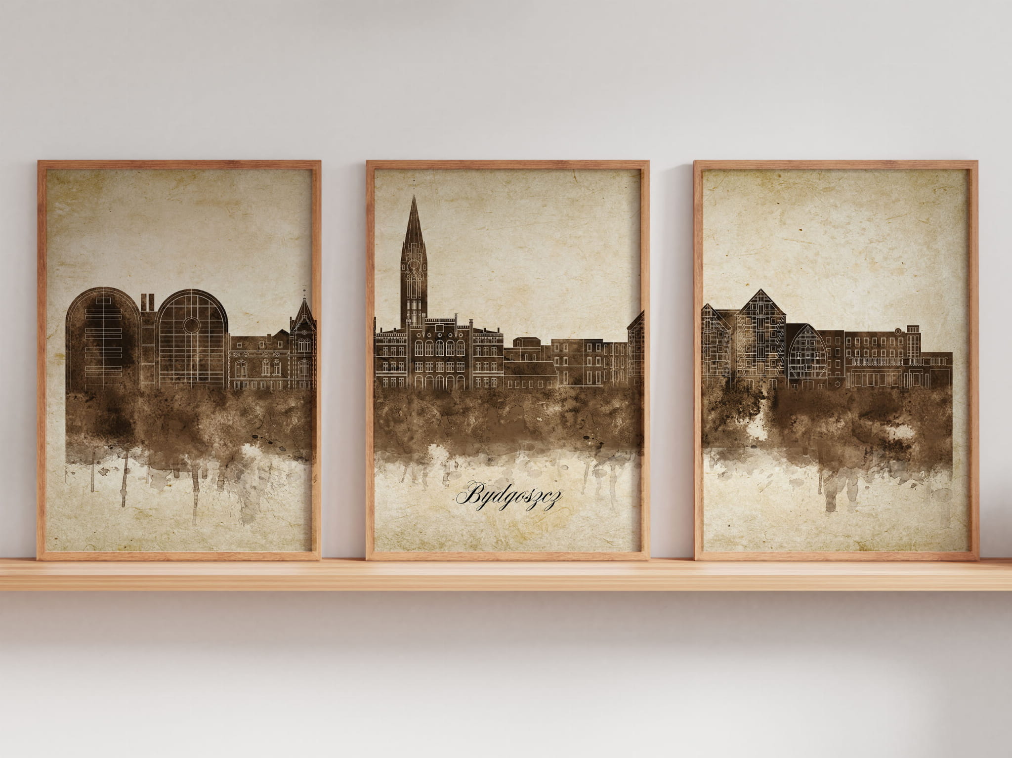Tryptyk Skylines Bydgoszcz w stylu Vintage, Styl akwarelowy