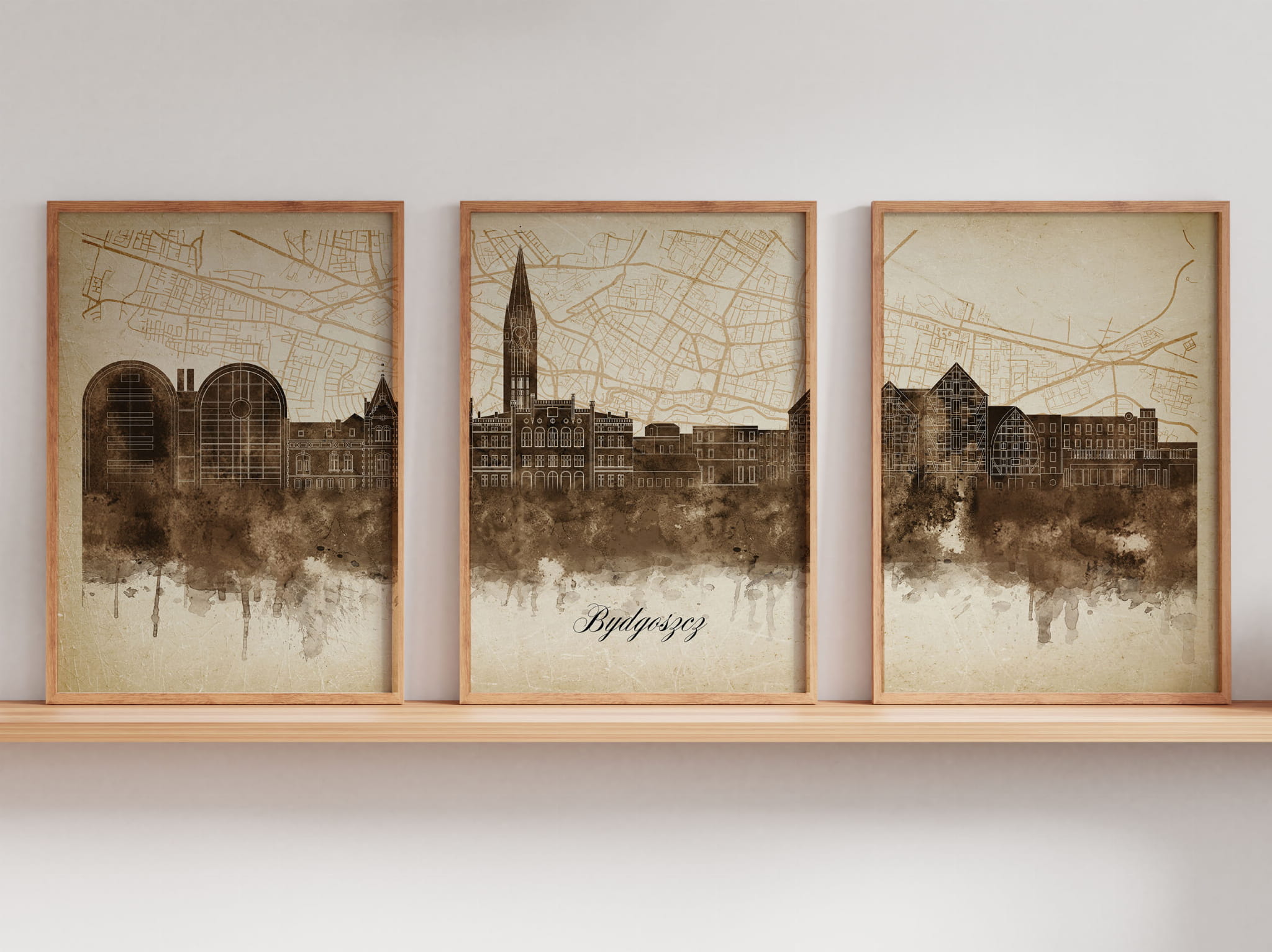 Tryptyk Skylines Bydgoszcz w stylu Vintage, Styl akwarelowy