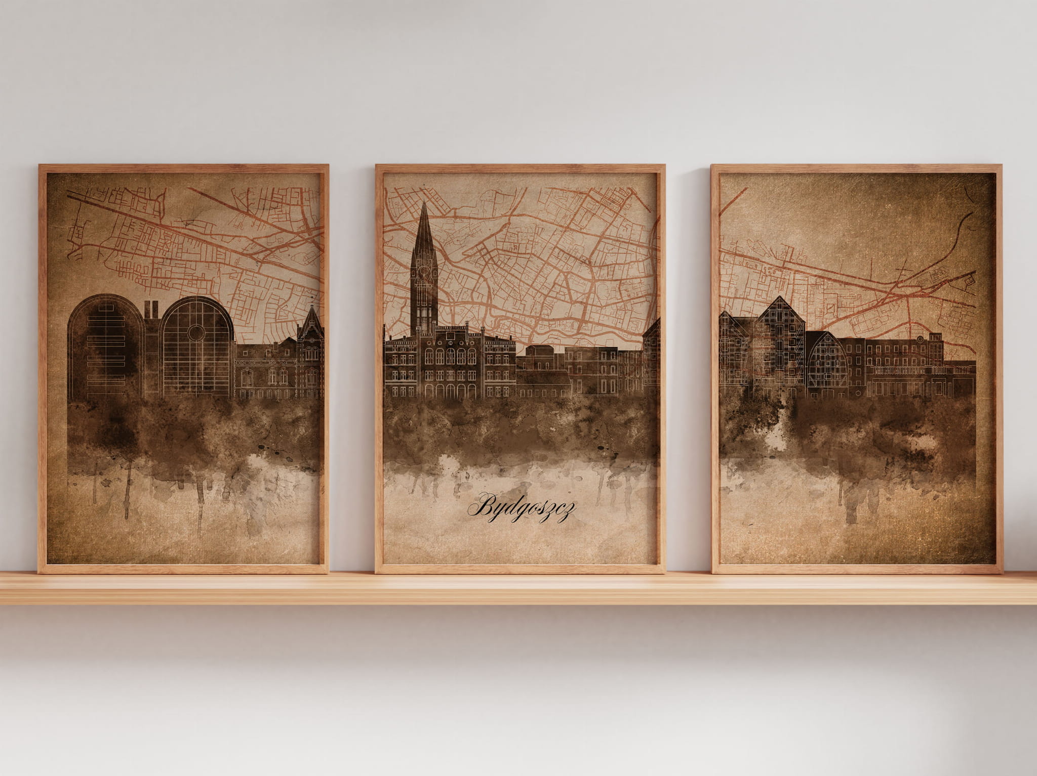 Tryptyk Skylines Bydgoszcz w stylu Vintage, Styl akwarelowy