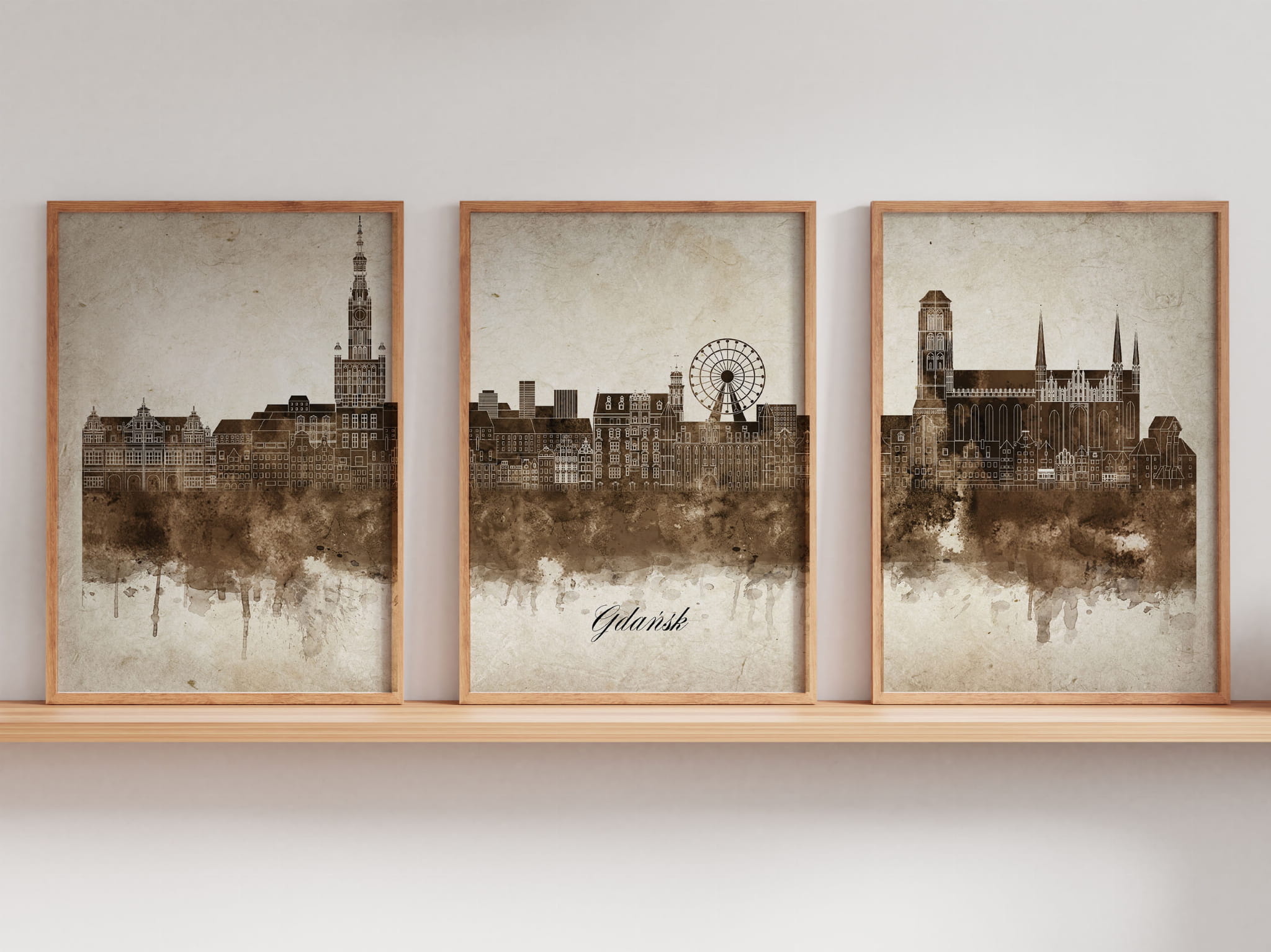 Tryptyk Skylines Gdańsk w stylu Vintage, Styl akwarelowy