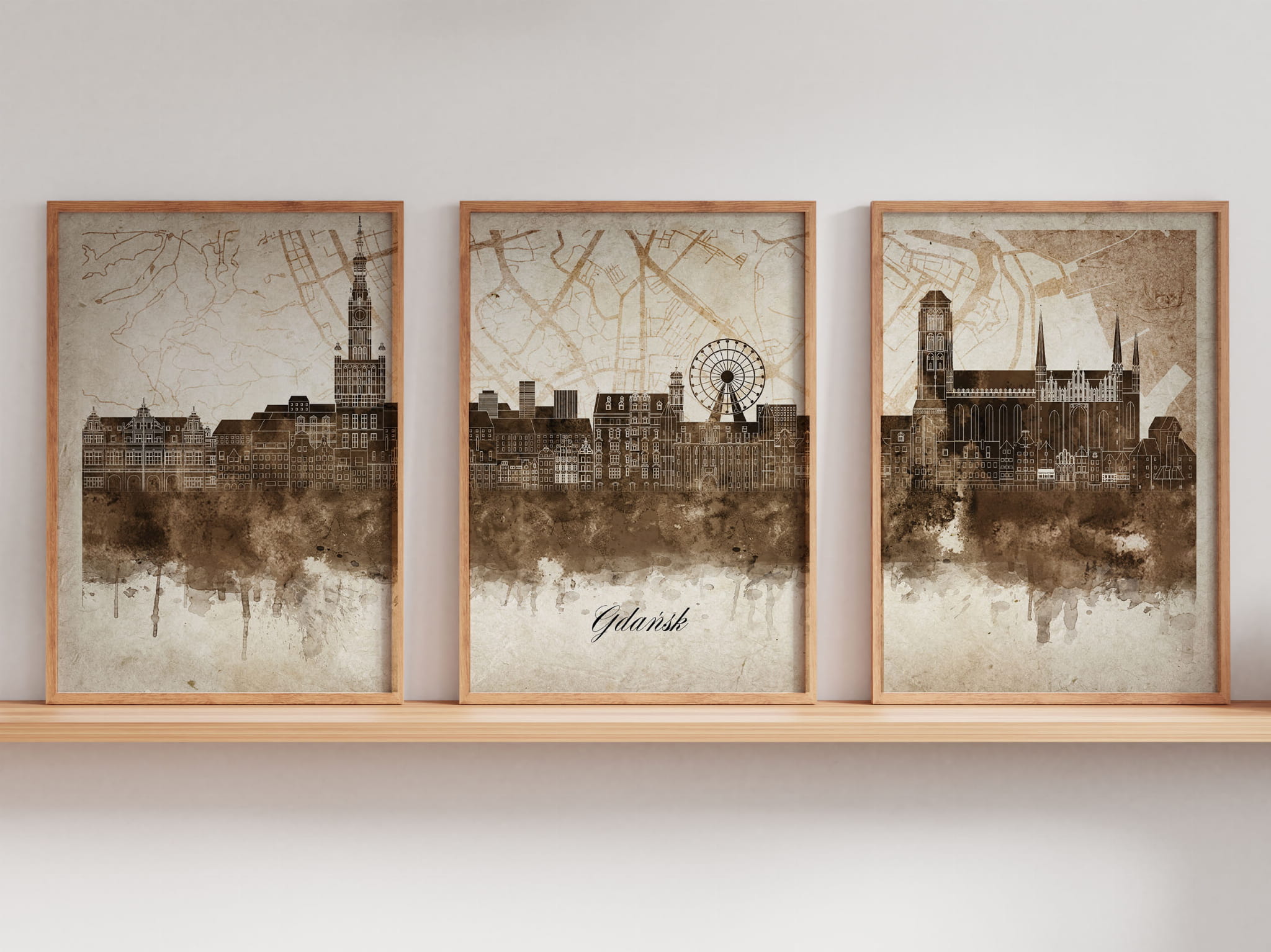 Tryptyk Skylines Gdańsk w stylu Vintage, Styl akwarelowy